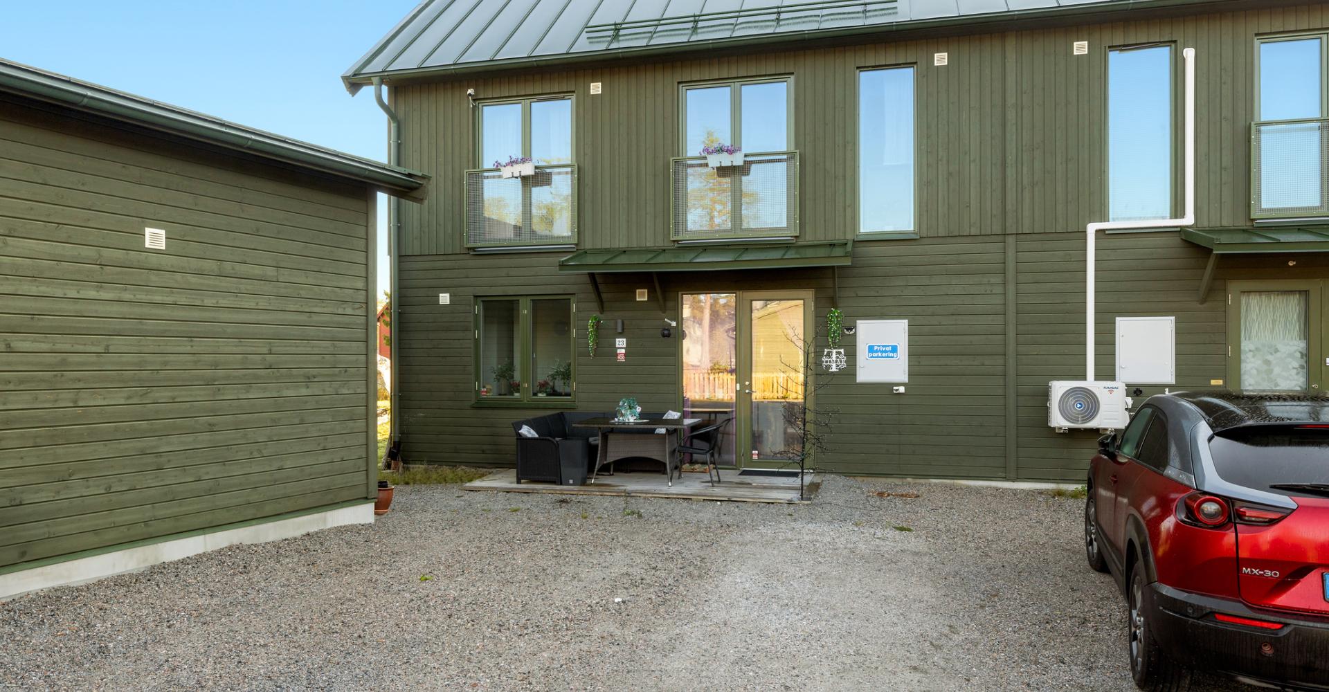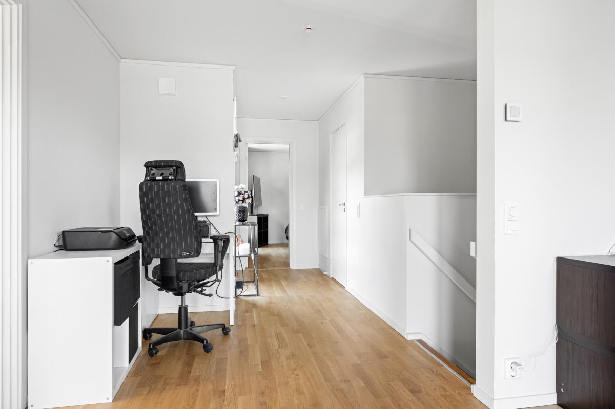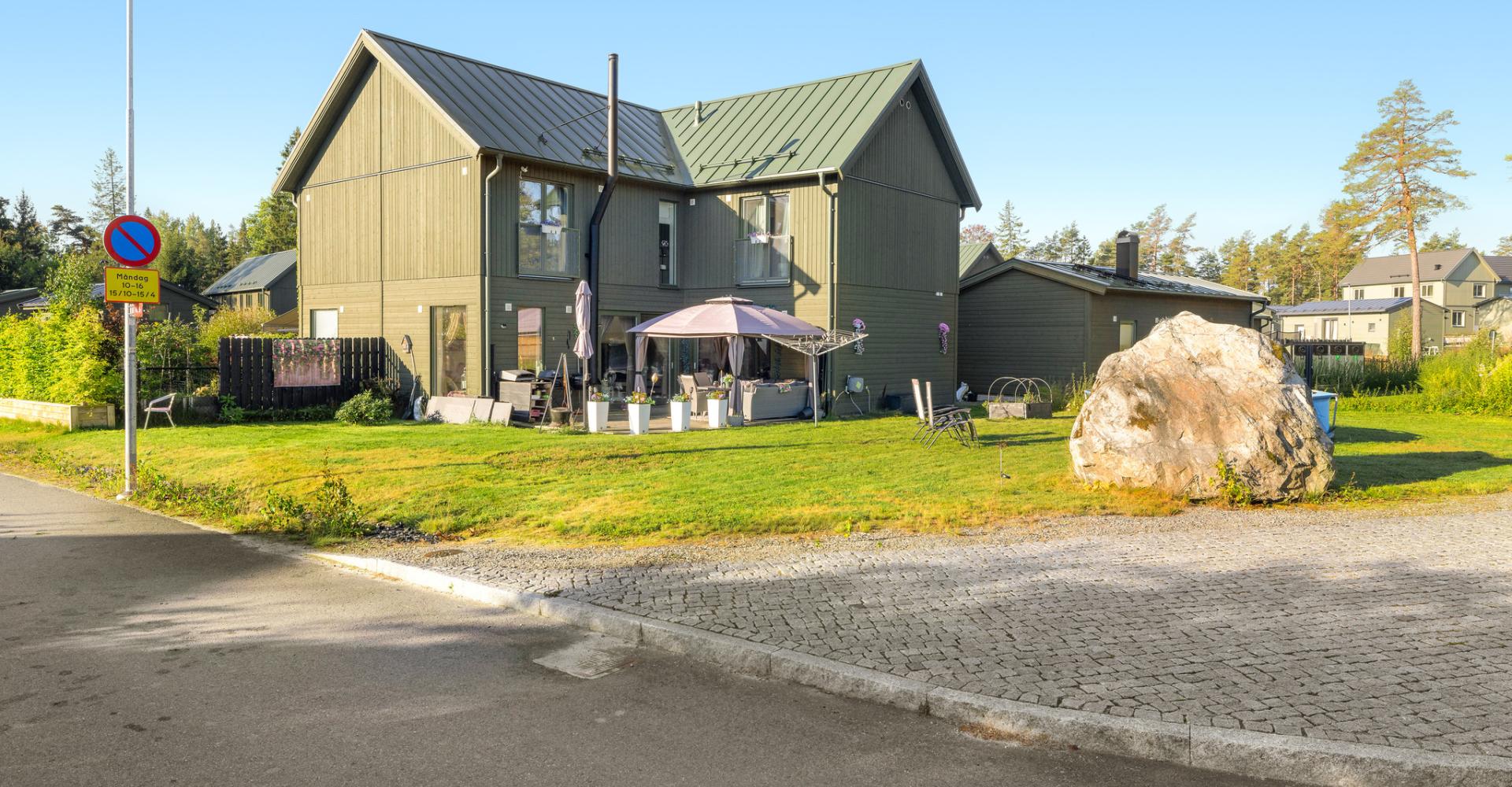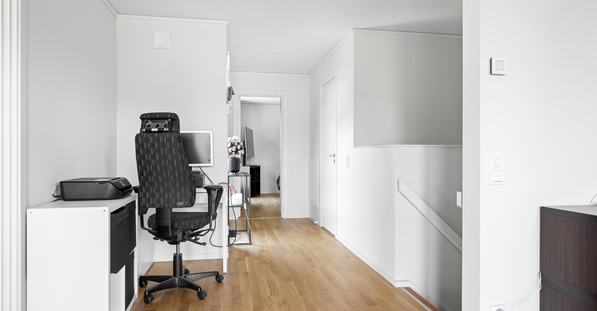 Påkostat parhus byggt 2021 i mycket gott skick, genomgående golvvärme i båda våningsplan. Välkomnande hall med garderober. Stort vardagsrum med kamin, här går det att dela av och få ytterligare ett sovrum. Från vardagsrummet finns det utgång via skjutdörrar till den stora härliga altanen. Kök med matplats vid fönster, här finns all maskinell utrustning såsom induktionshäll, diskmaskin, separat ugn och micro. Även från köket har man utgång till altanen via skjutdörrar. Helkaklat duschrum på entréplan. Här finns också en väl tilltagen tvättstuga.