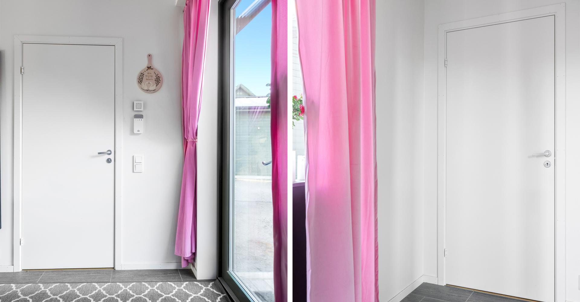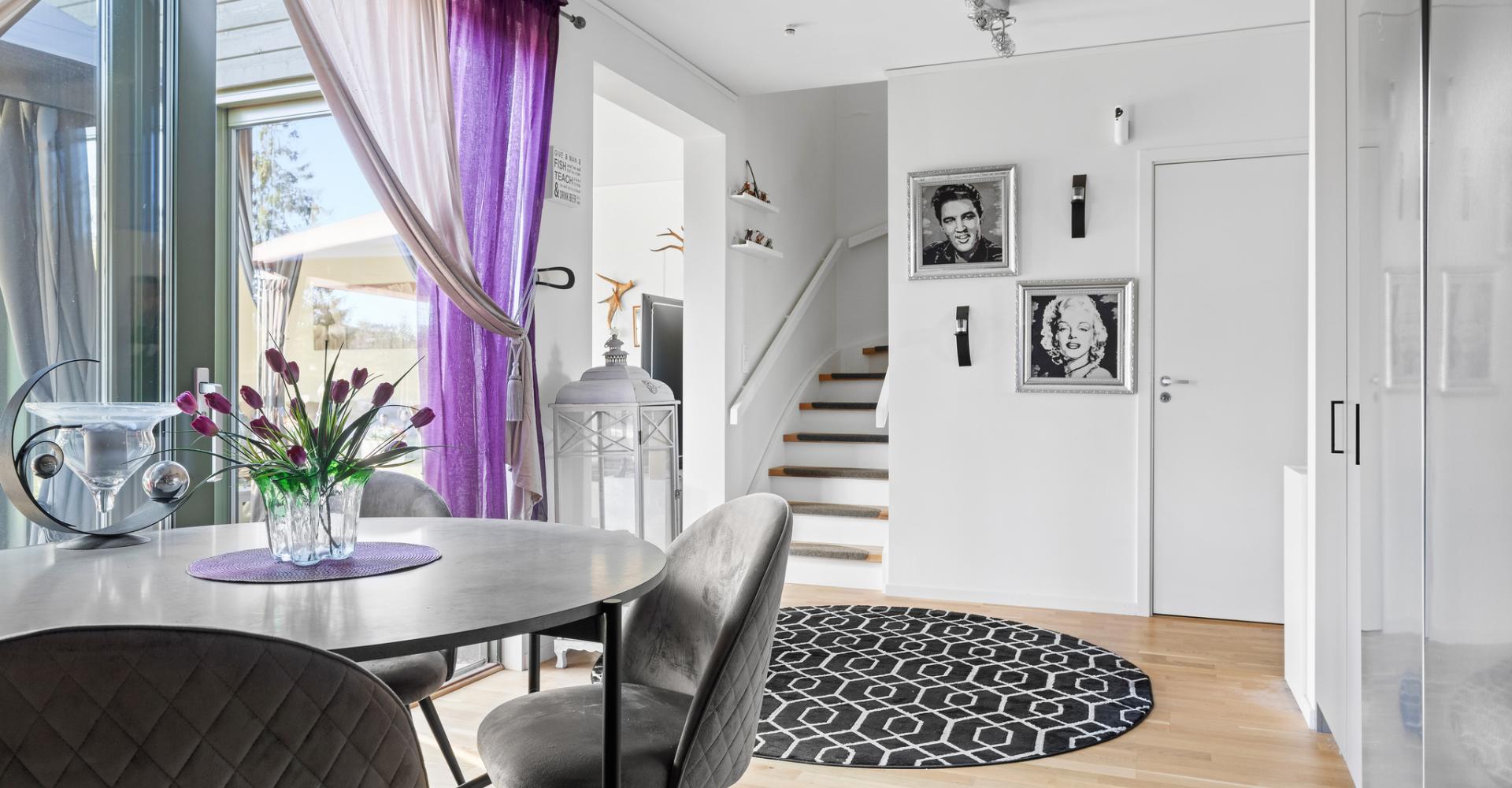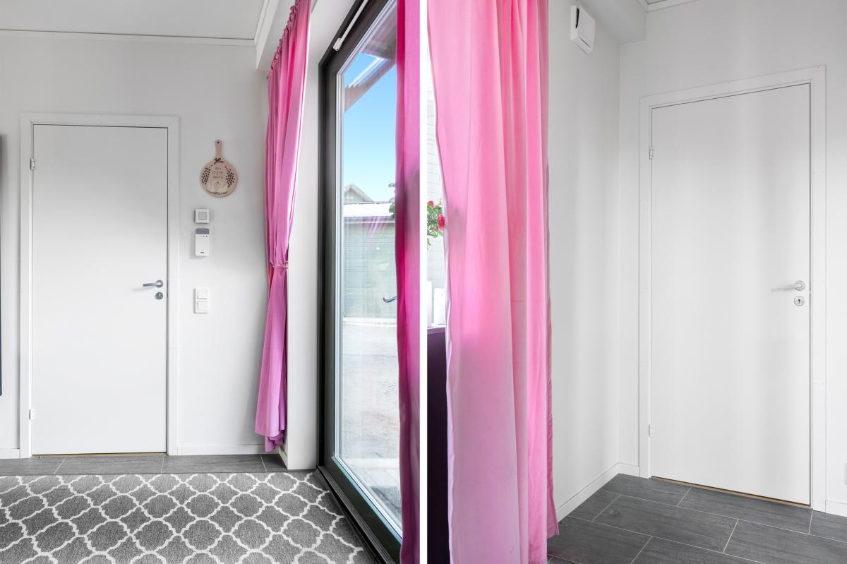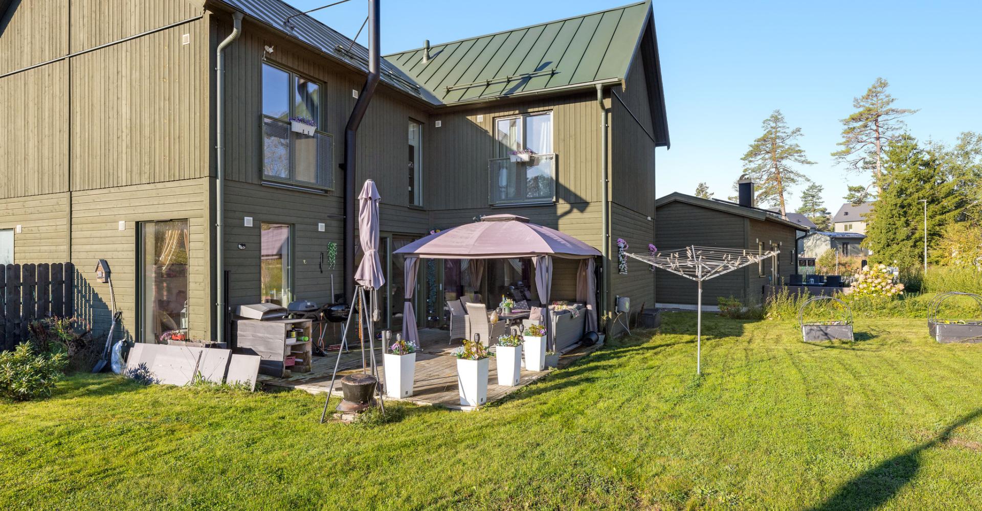 Påkostat parhus byggt 2021 i mycket gott skick, genomgående golvvärme i båda våningsplan. Välkomnande hall med garderober. Stort vardagsrum med kamin, här går det att dela av och få ytterligare ett sovrum. Från vardagsrummet finns det utgång via skjutdörrar till den stora härliga altanen. Kök med matplats vid fönster, här finns all maskinell utrustning såsom induktionshäll, diskmaskin, separat ugn och micro. Även från köket har man utgång till altanen via skjutdörrar. Helkaklat duschrum på entréplan. Här finns också en väl tilltagen tvättstuga.