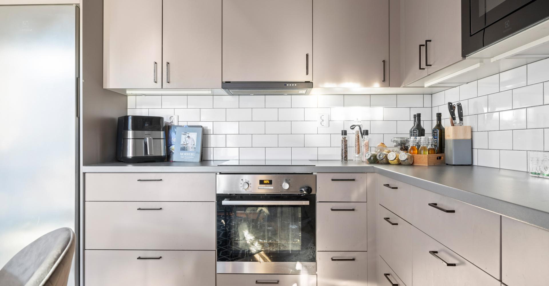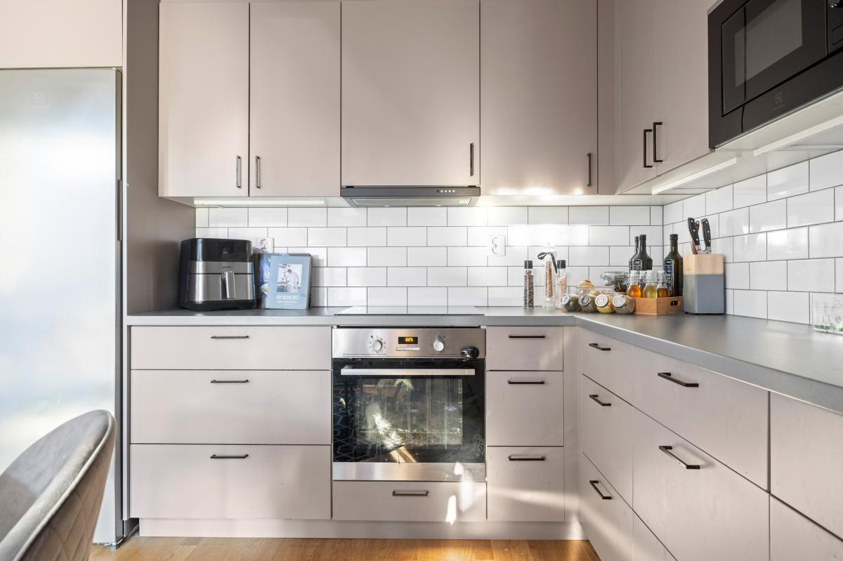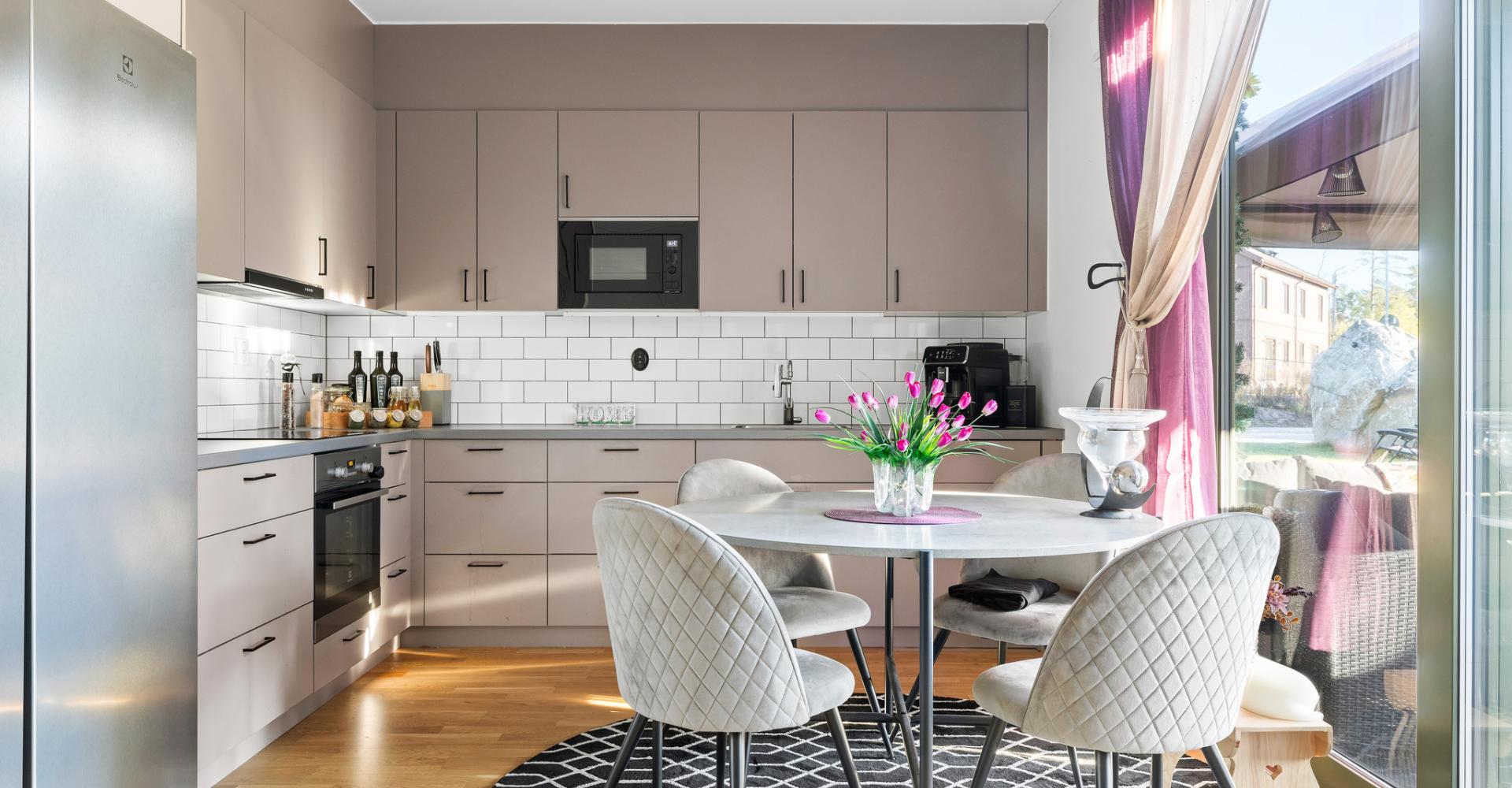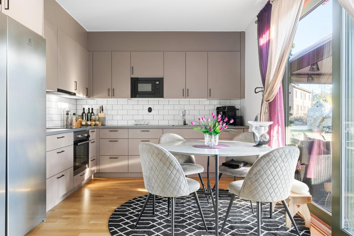 Kök med parkettgolv samt målade väggar, utgång till altan via skjutdörrar. Köket är utrustat med induktionshäll, spisfläkt, ugn, micro, kyl, frys samt diskmaskin. Samtliga från Electrolux.