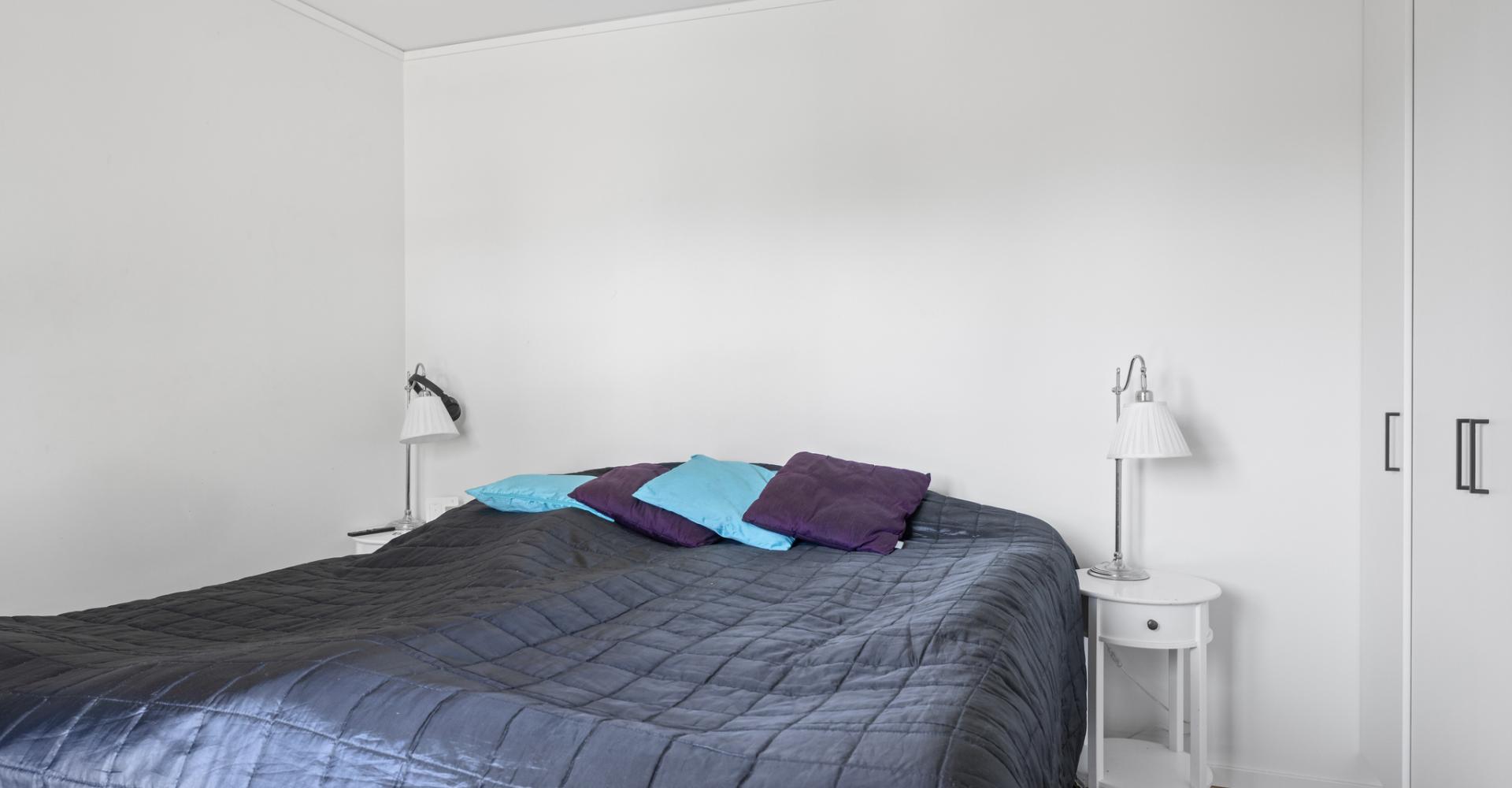 Sovrum med parkettgolv, målade väggar samt fransk balkongdörr. 4 garderober varav två är dubbelgarderober.