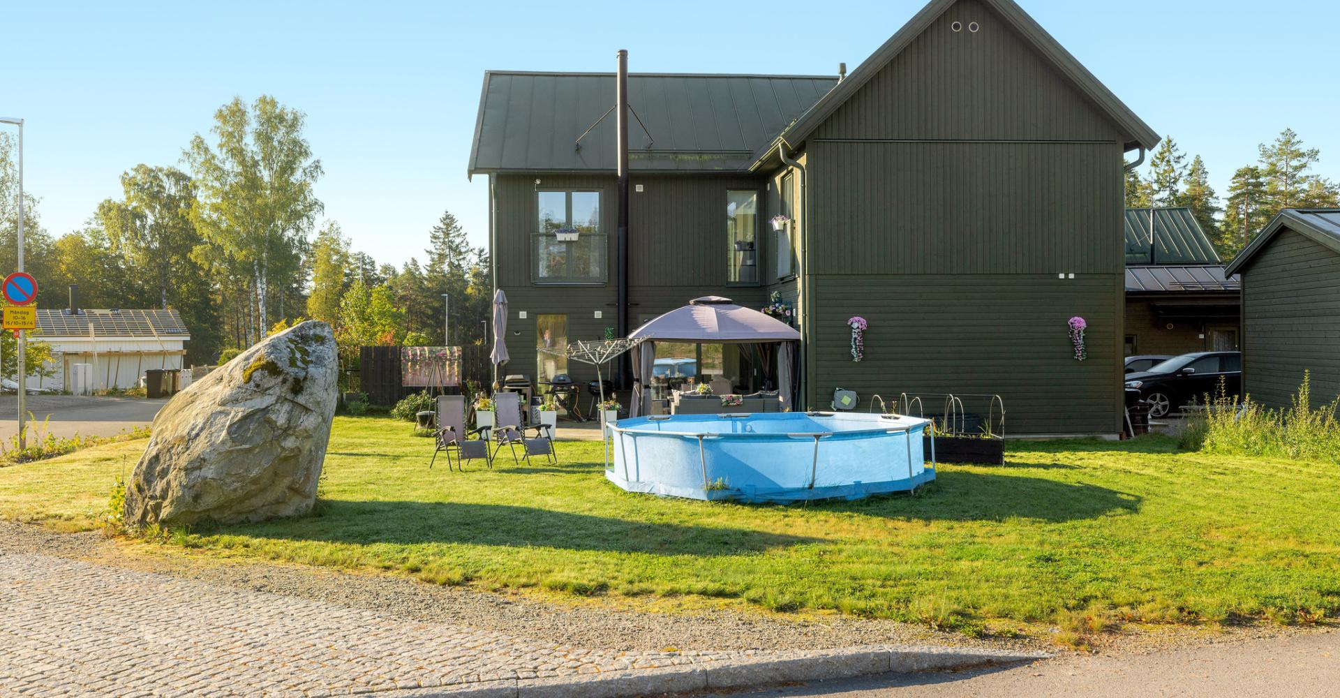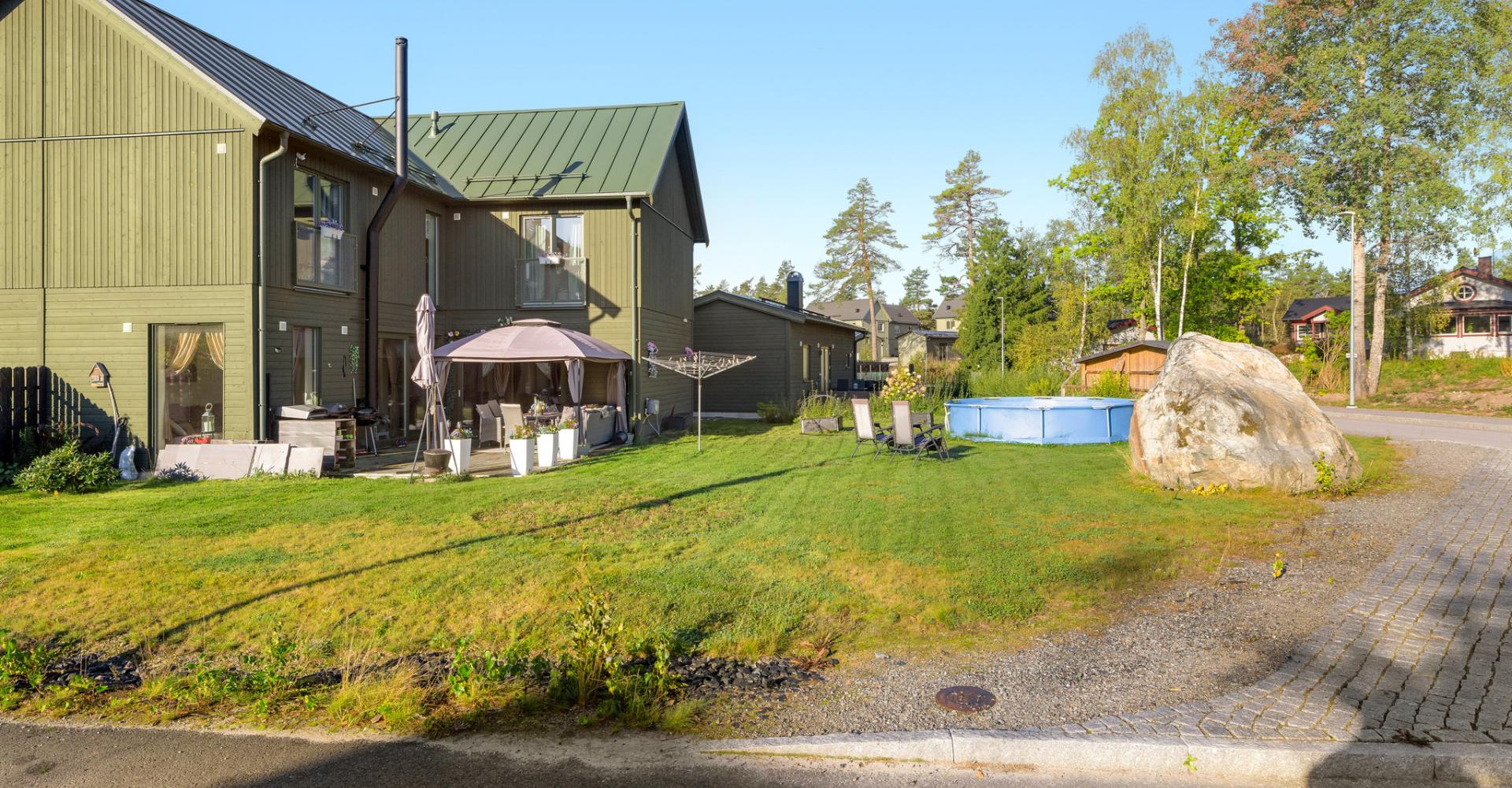 Parhuset ligger mycket bra i området med stor hörntomt. Uteplats på båda sidor av huset. Säljaren lämnar kvar utemöbler och grill, så det går bra att trivas från första dagen .