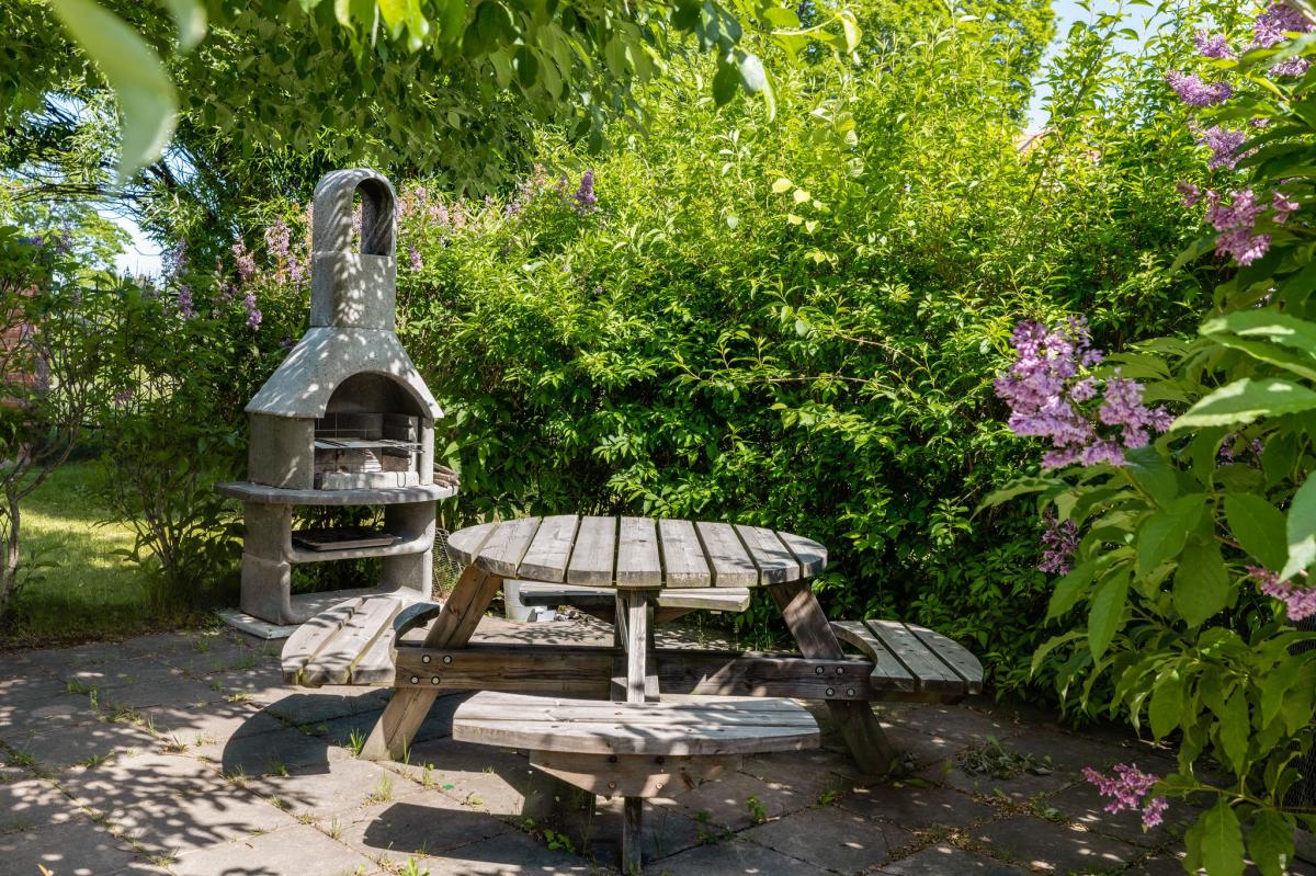 Flera sittgrupper i trädgården