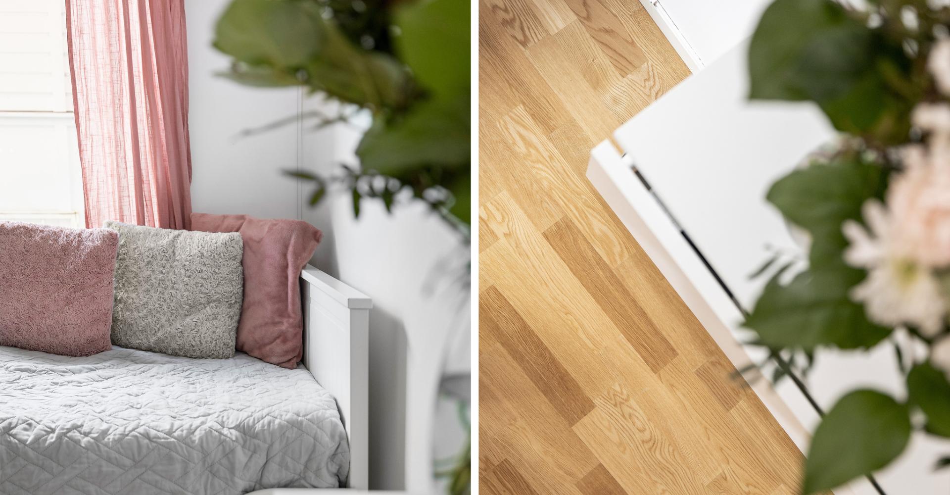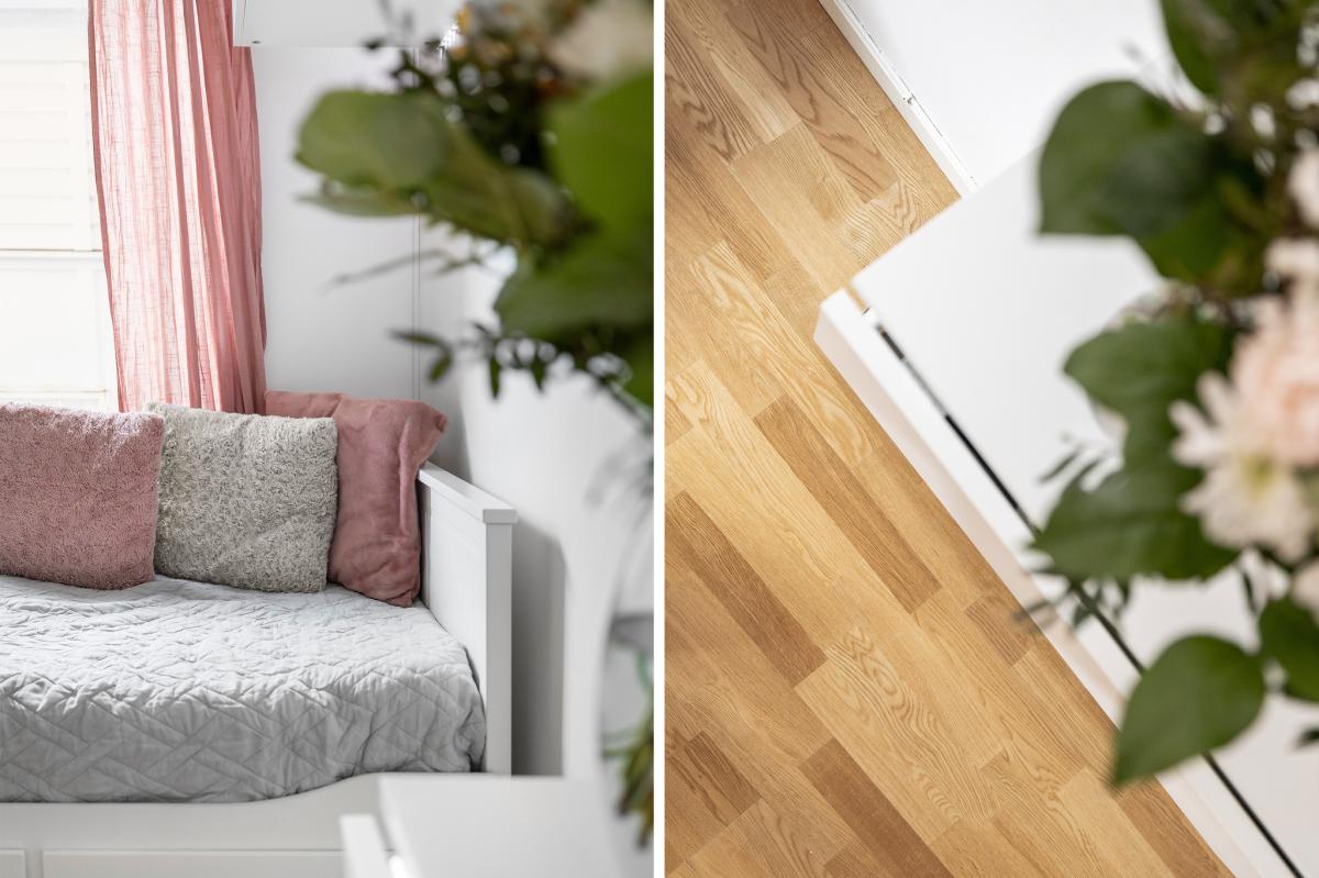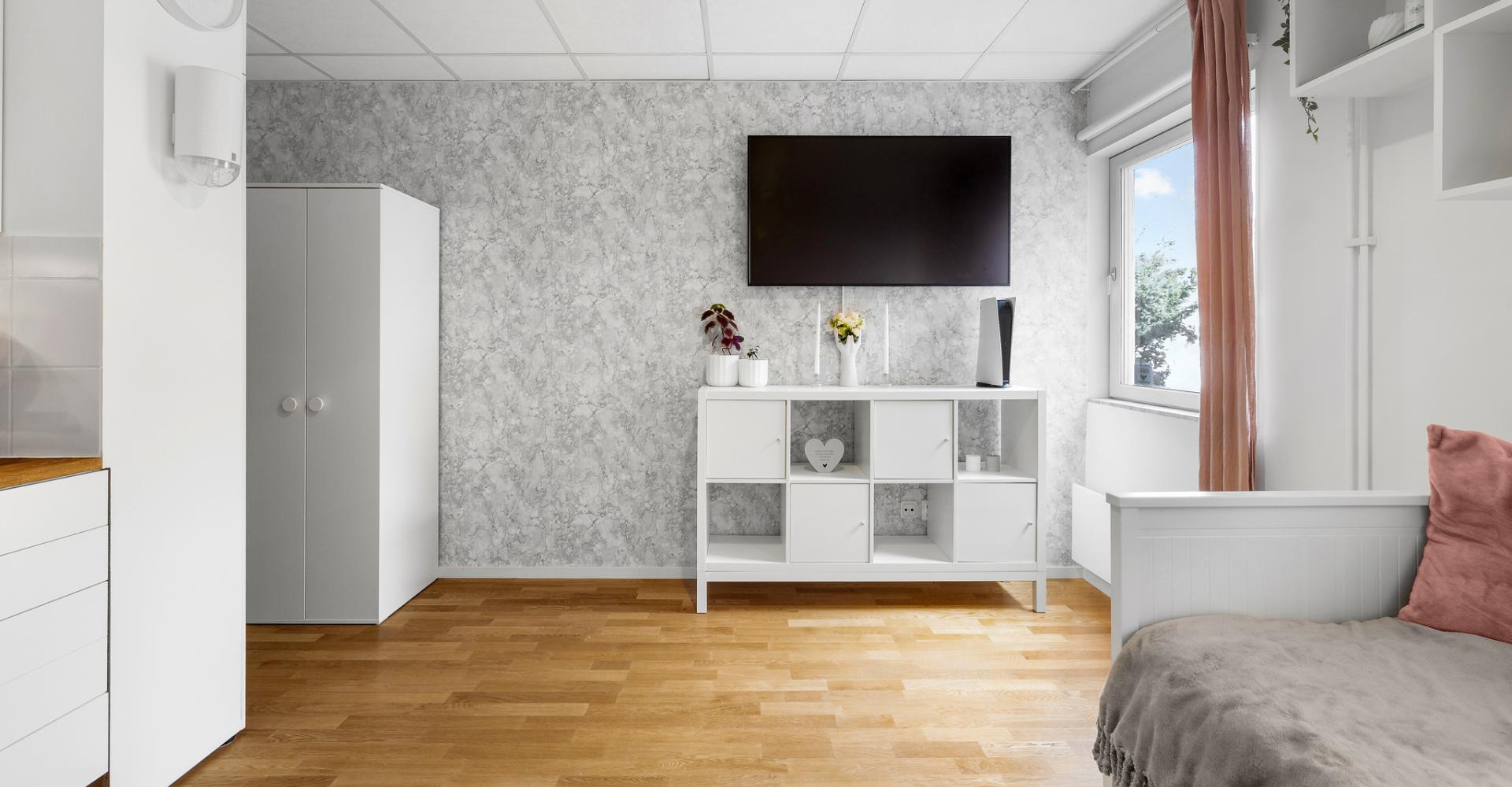 Rum med parkettgolv samt ljusa väggar