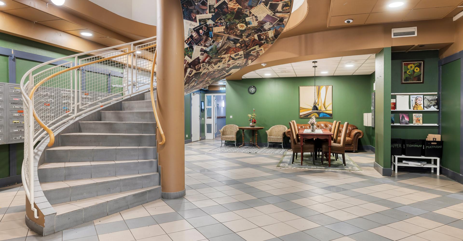 Entré med sittgrupp samt trappa till övre plan
