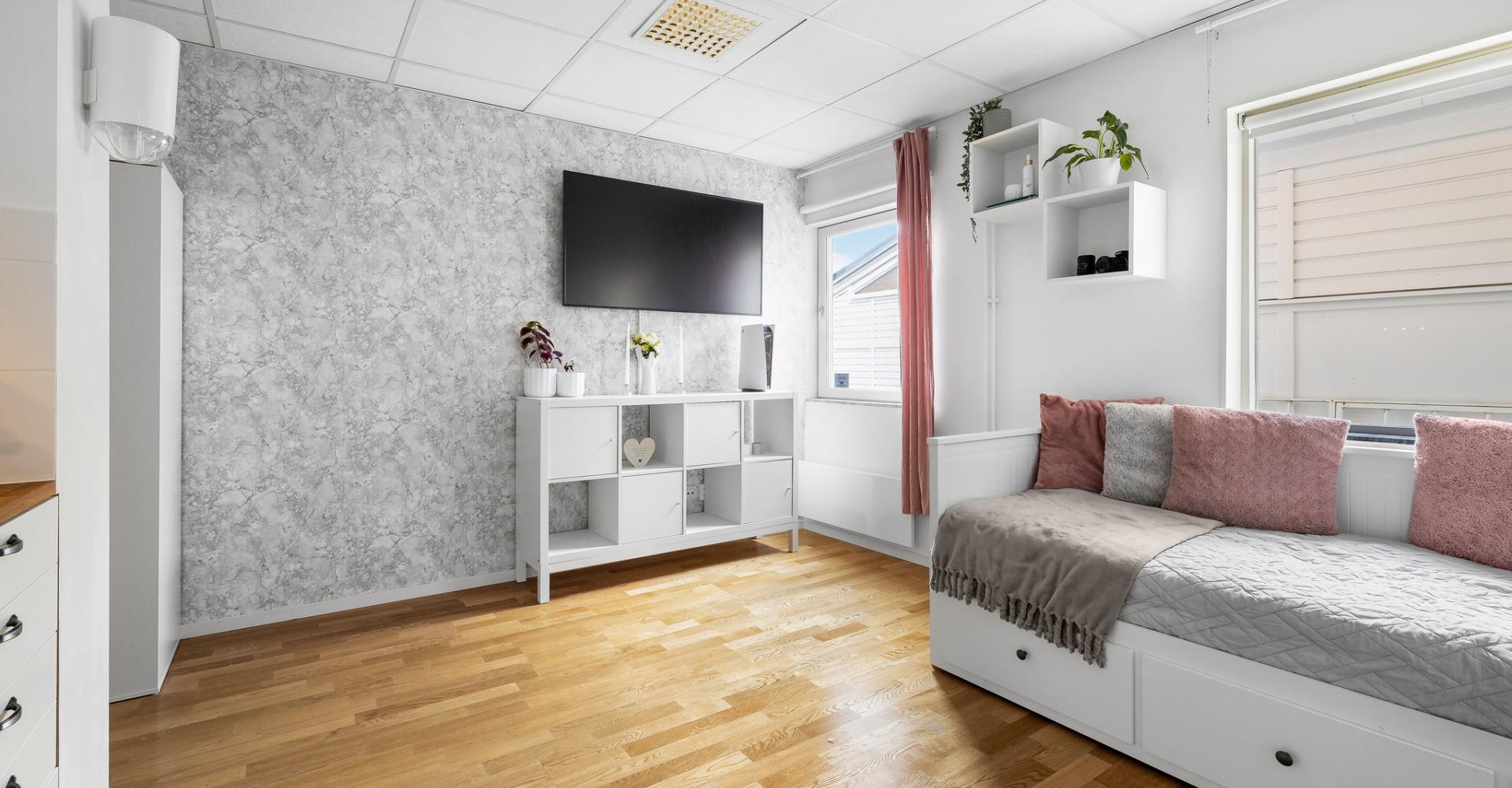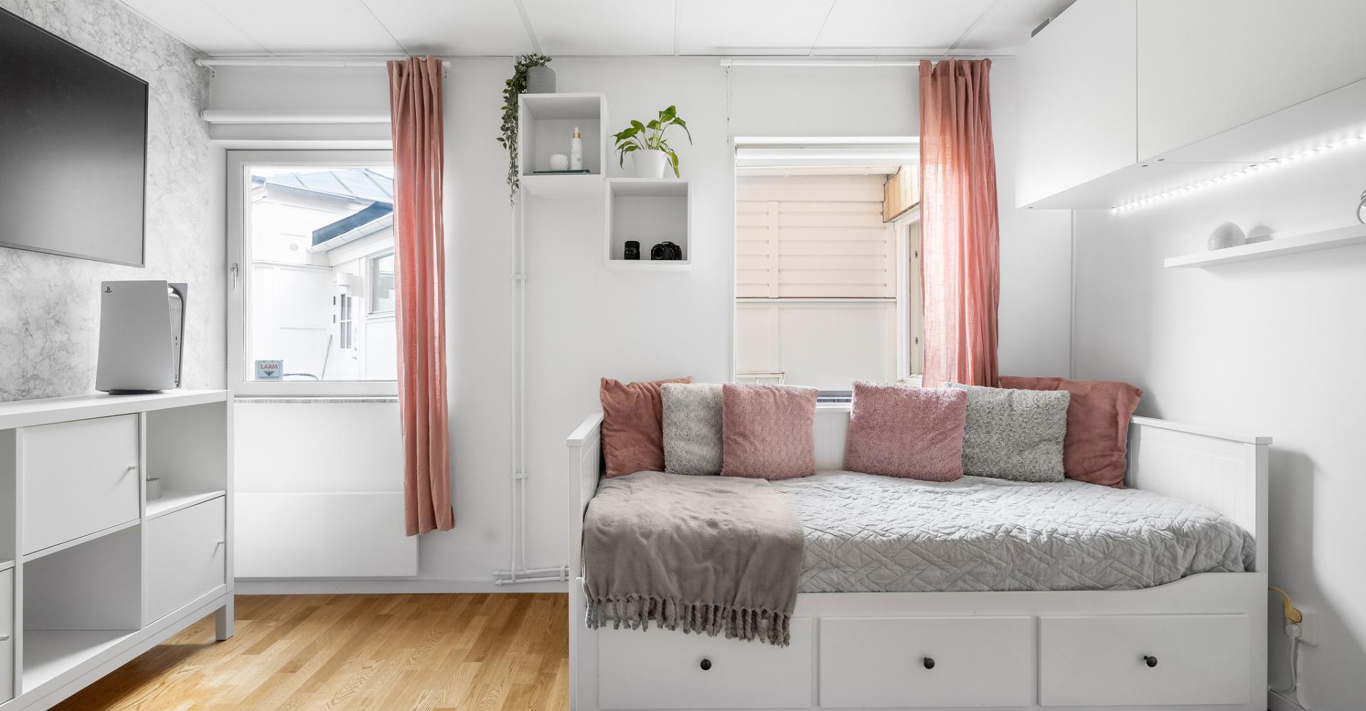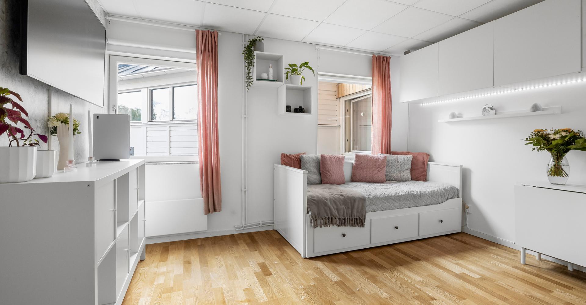 Ljust rum med två fönster