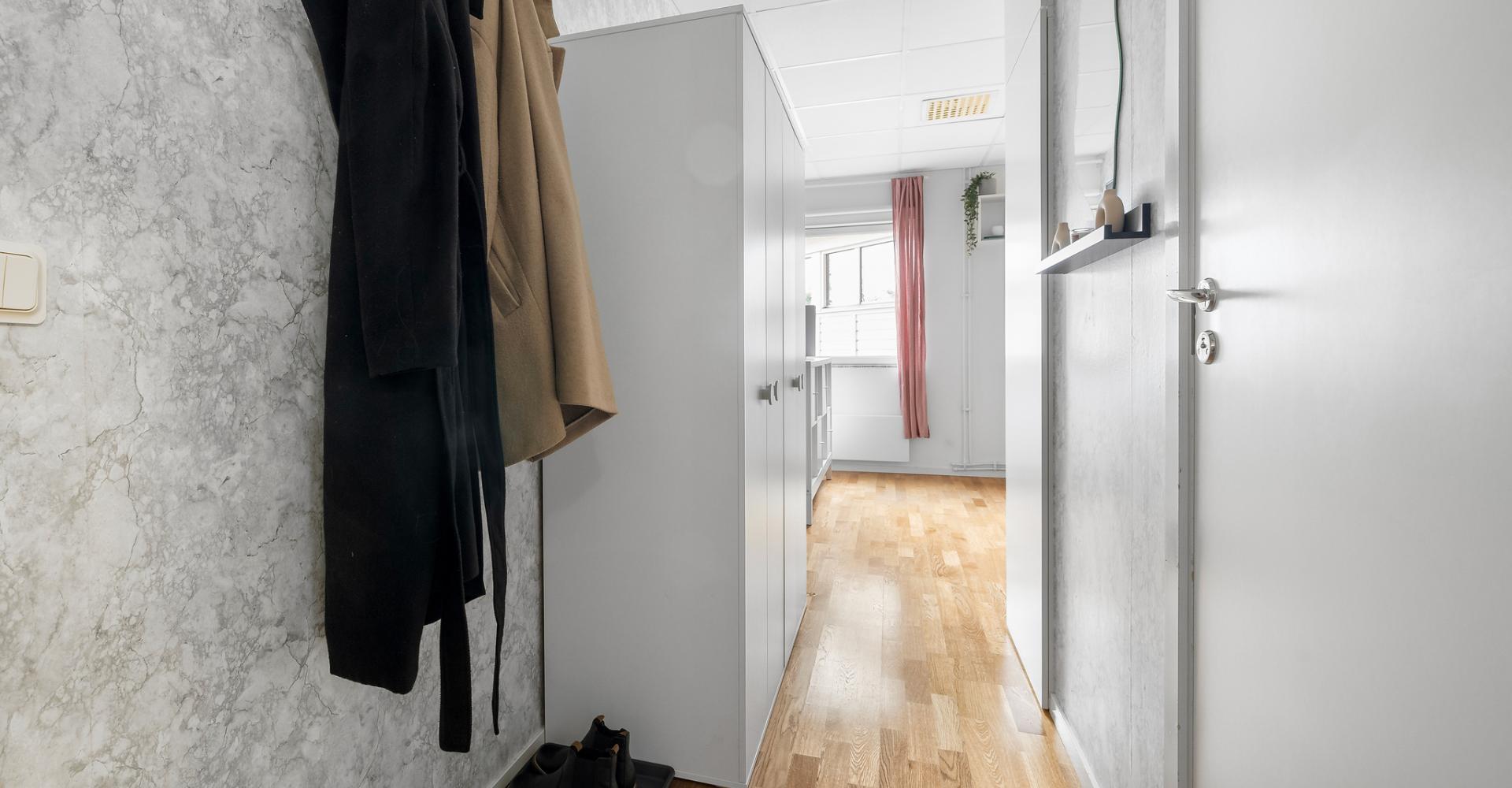 Hall med dubbel garderob samt badrum