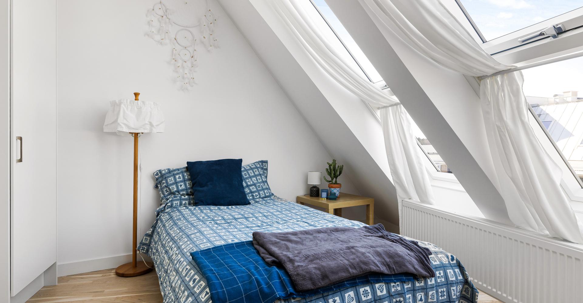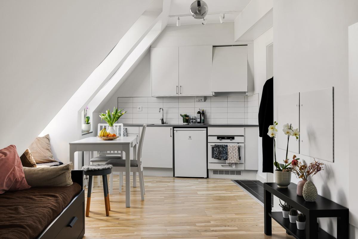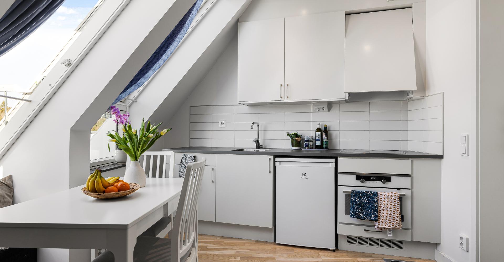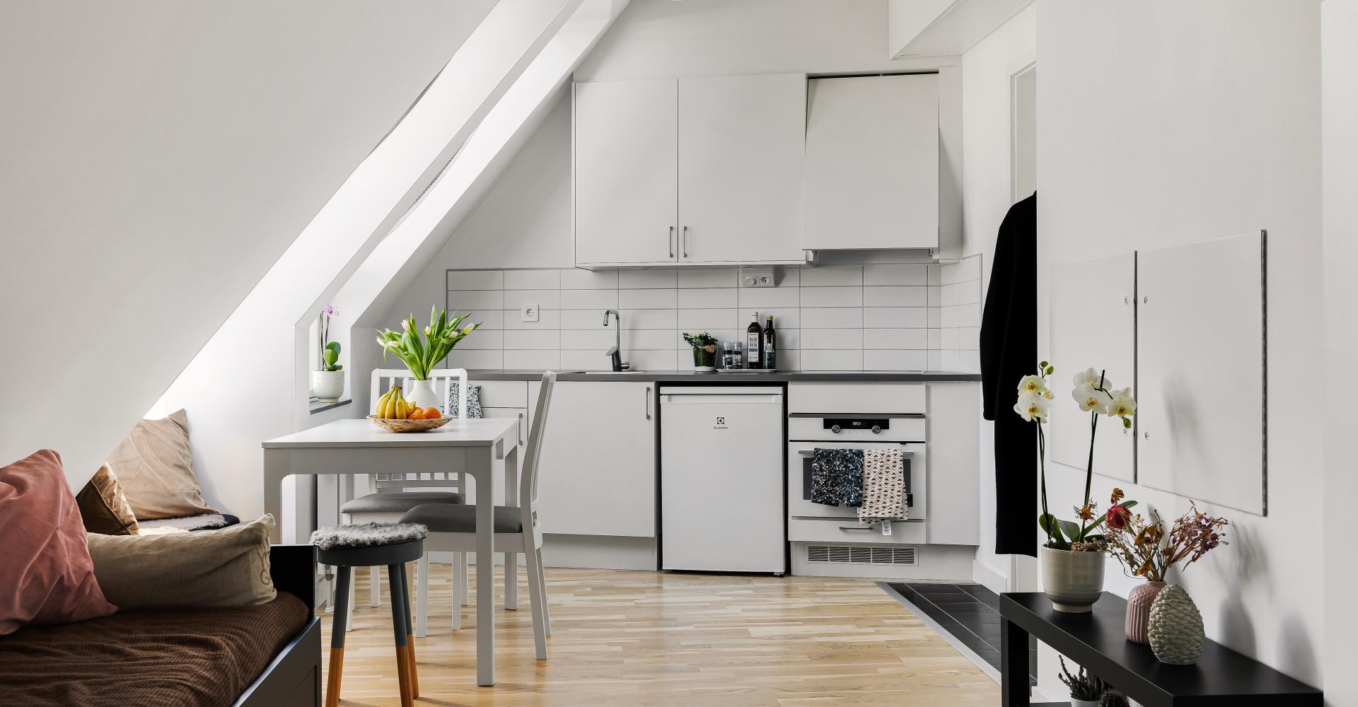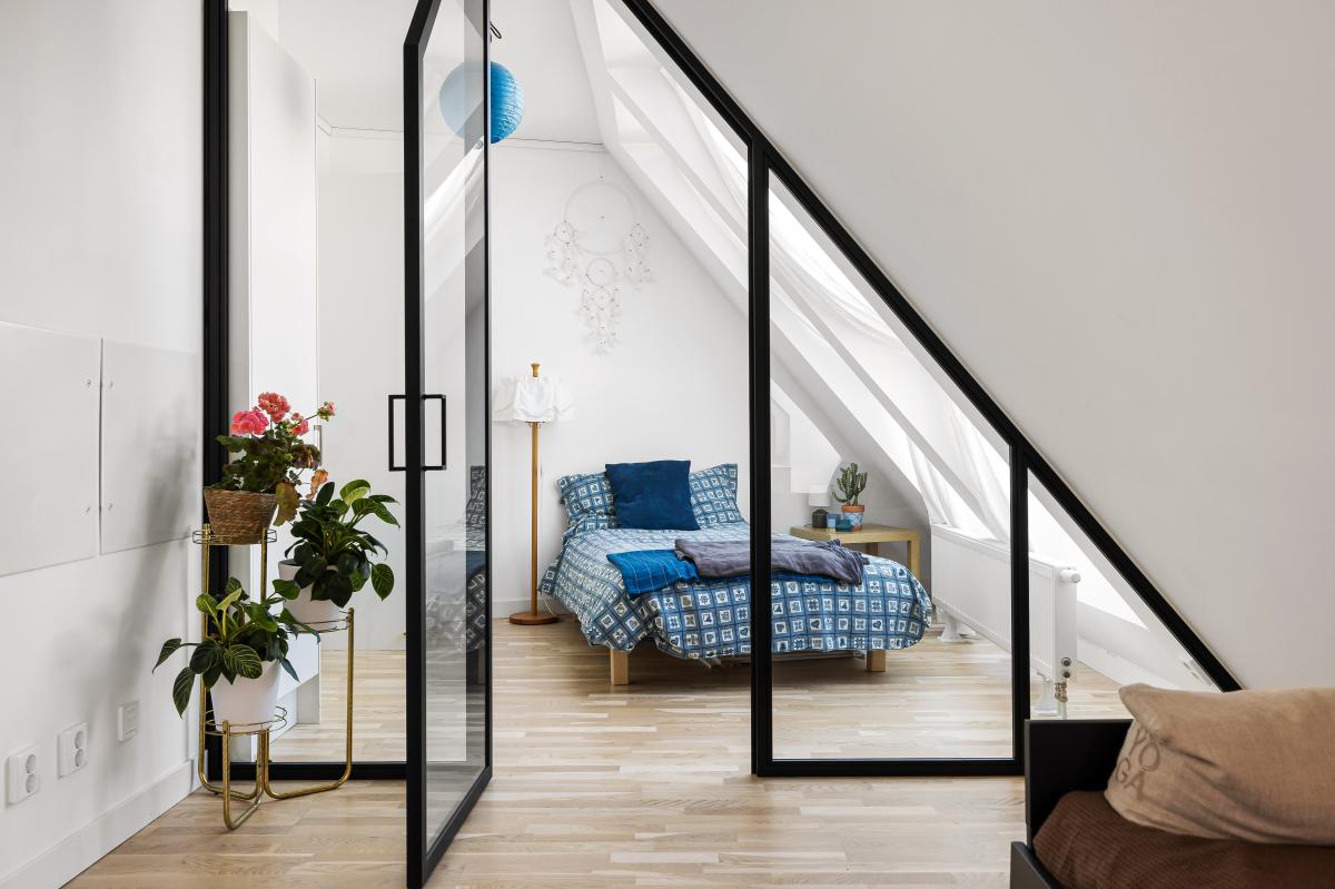 Lägenheten högst upp med härliga snedtak och fint ljusinsläpp.