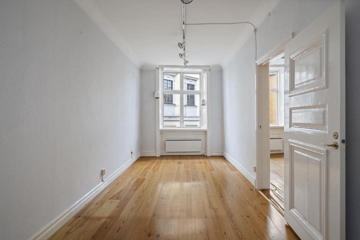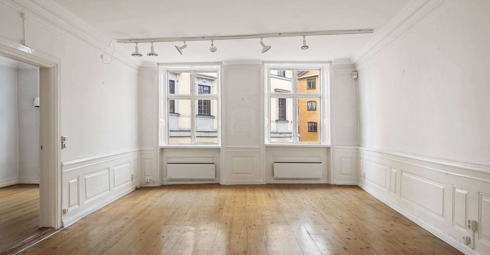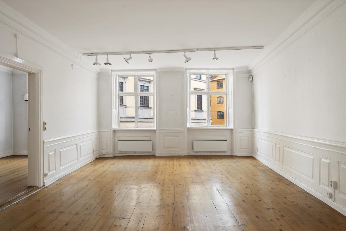 Rymligt rum med furugolv och väggpanel. Takhöjden här är ca 2,70 cm. Två fönster som har fin kontakt med Järntorget och anrika gamla Riksbankshuset. Här står också statyn av Evert Taube och vakar över torget, inte långt från stamkrog "Den gyldene freden" på Österlånggatan 51.