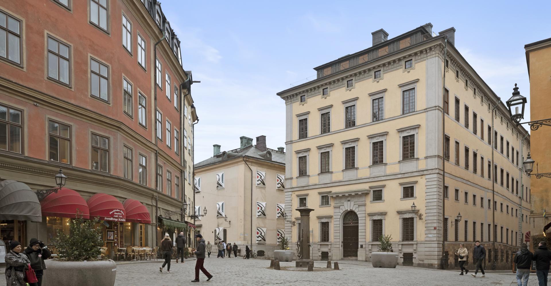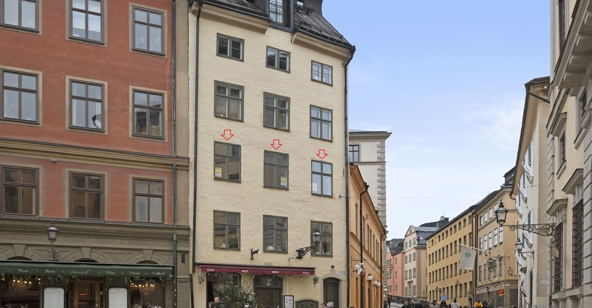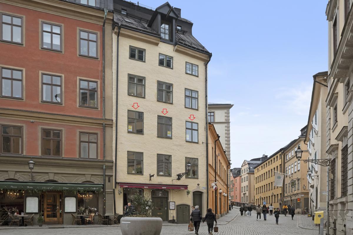 Unik byggnad med ett historiskt intressant läge i Gamla Stan där Evert Taubes staty bevakar torget strax utanför porten.