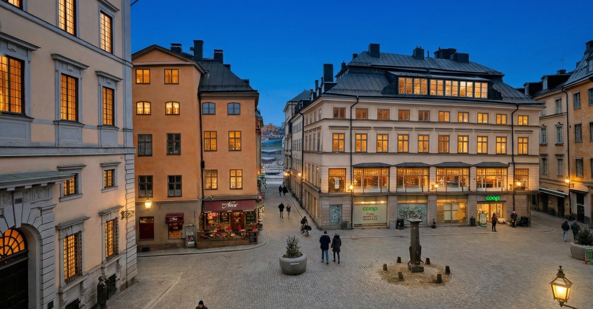 Att bo i Gamla stan är att leva mitt i Stockholms själ. Bland kullerstensgränder och färgstarka fasader möts stadens rika historia och ett levande nutidsliv. Området bjuder på en unik atmosfär där varje kvarter berättar sin egen historia från medeltida byggnader och anrika torg till små butiker, gallerier och caféer med internationell puls. Vid T-banestationen finns den välsorterade Munkbrohallen och rakt över torget ligger ett Coop Nära med postservice, båda med mycket generösa öppettider.
