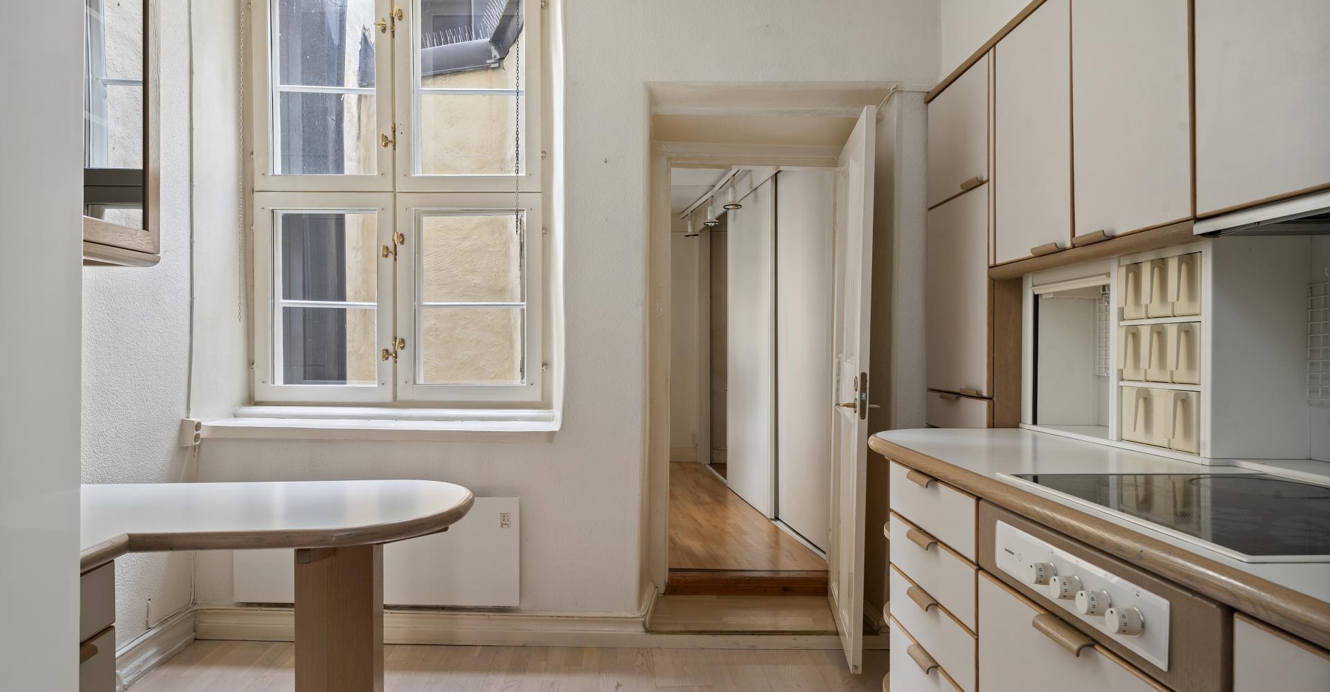 Hela lägenheten är i behov av en uppfräschning då det var länge sedan sist. Detta är således en fantastisk möjlighet för dig som vill sätt din egen stil och karaktär i en bostad belägen i en unik och historisk miljö.