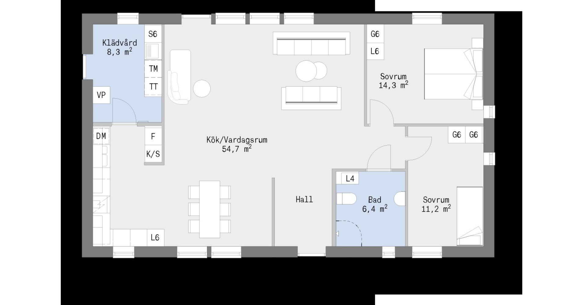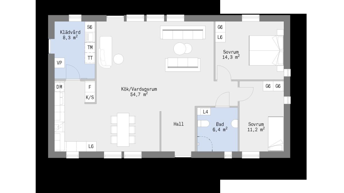 Husmodell Greta vardagsrum