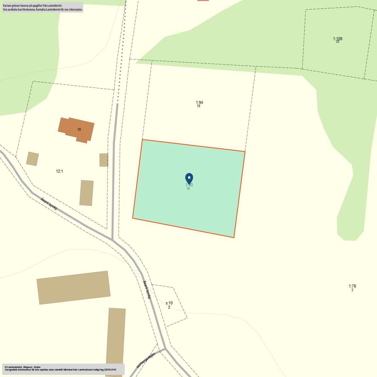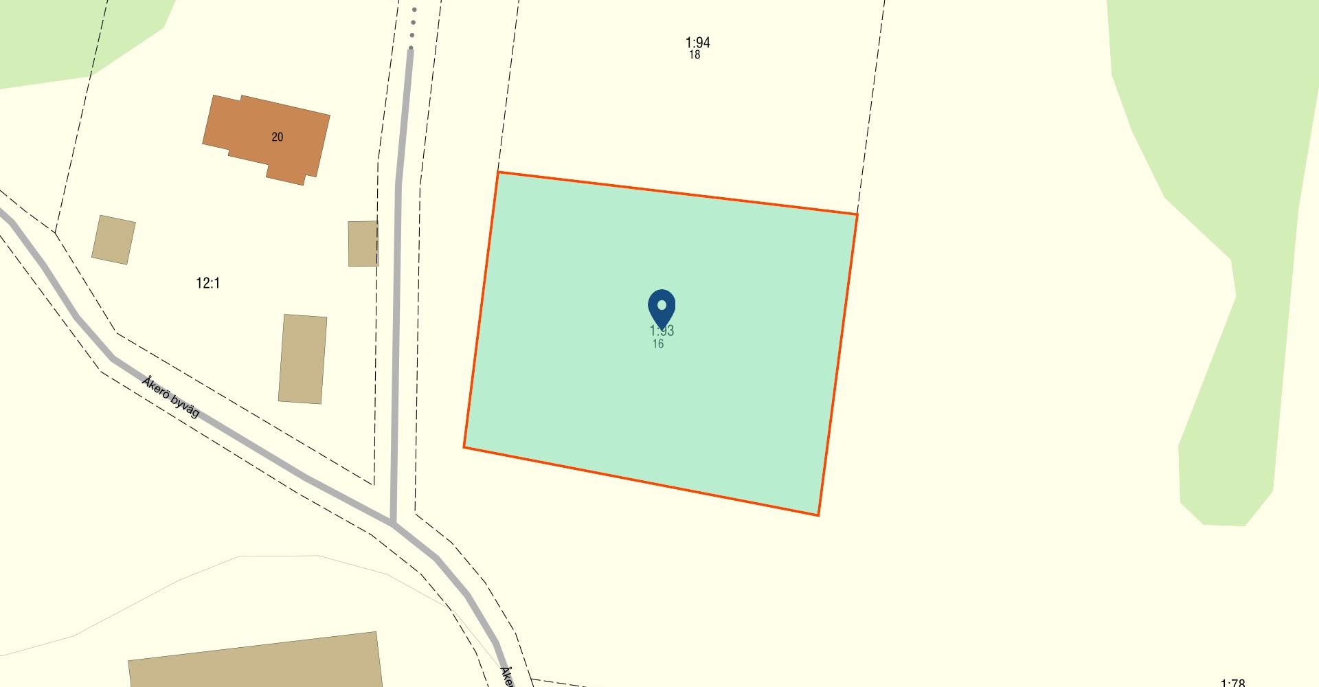 Tomten är inte bunden till någon husleverantör utan man kan fritt välja att bygga med vem man vill. Fastigheten ligger utanför planlagt område vilket innebär att du är mer fri att välja vad du vill, du har ingen detaljplan som styr vad du får bygga. Åkerö är en idyllisk by med både permanentboende och fritidsboende.