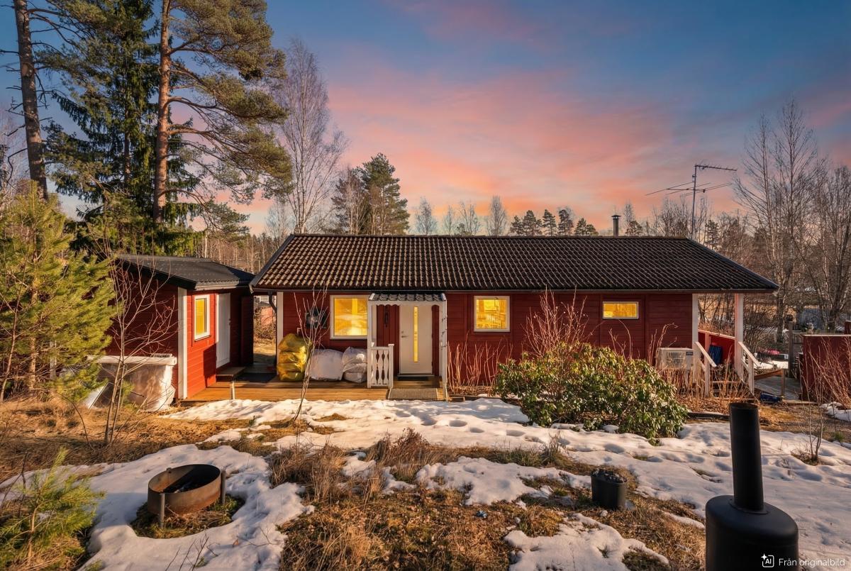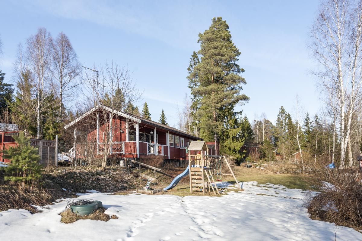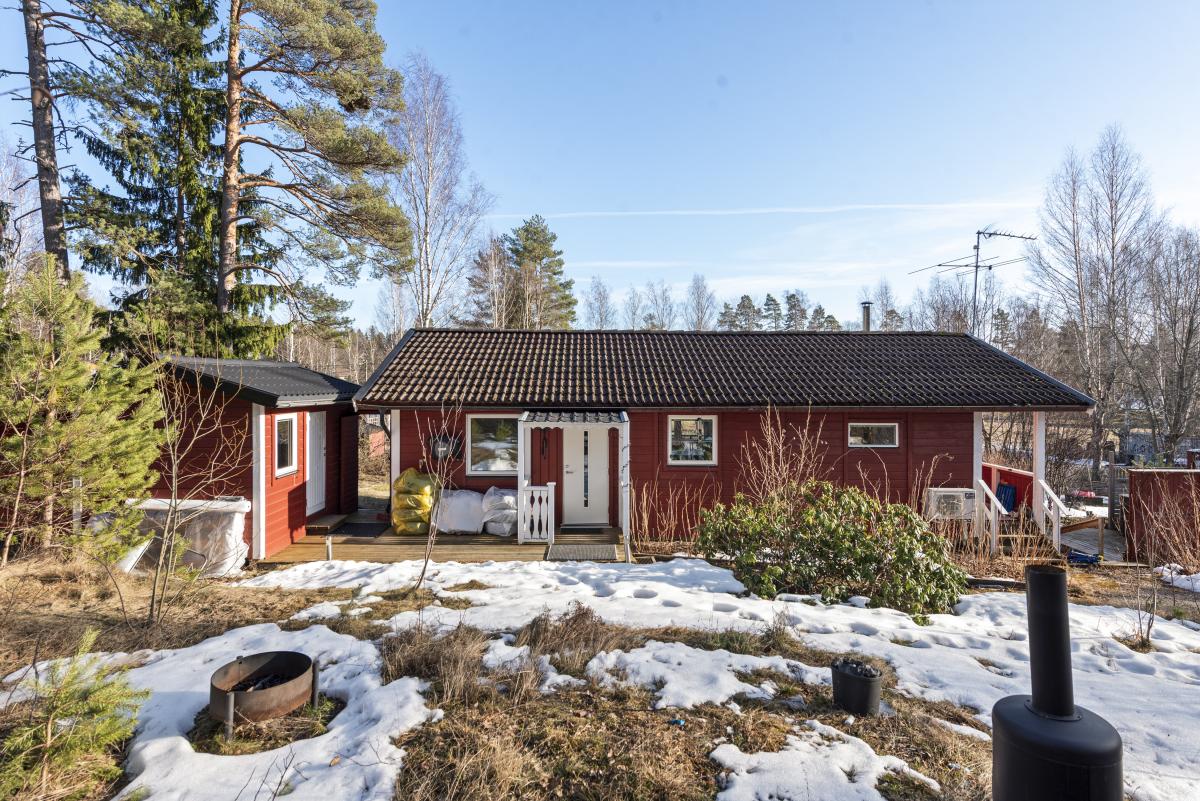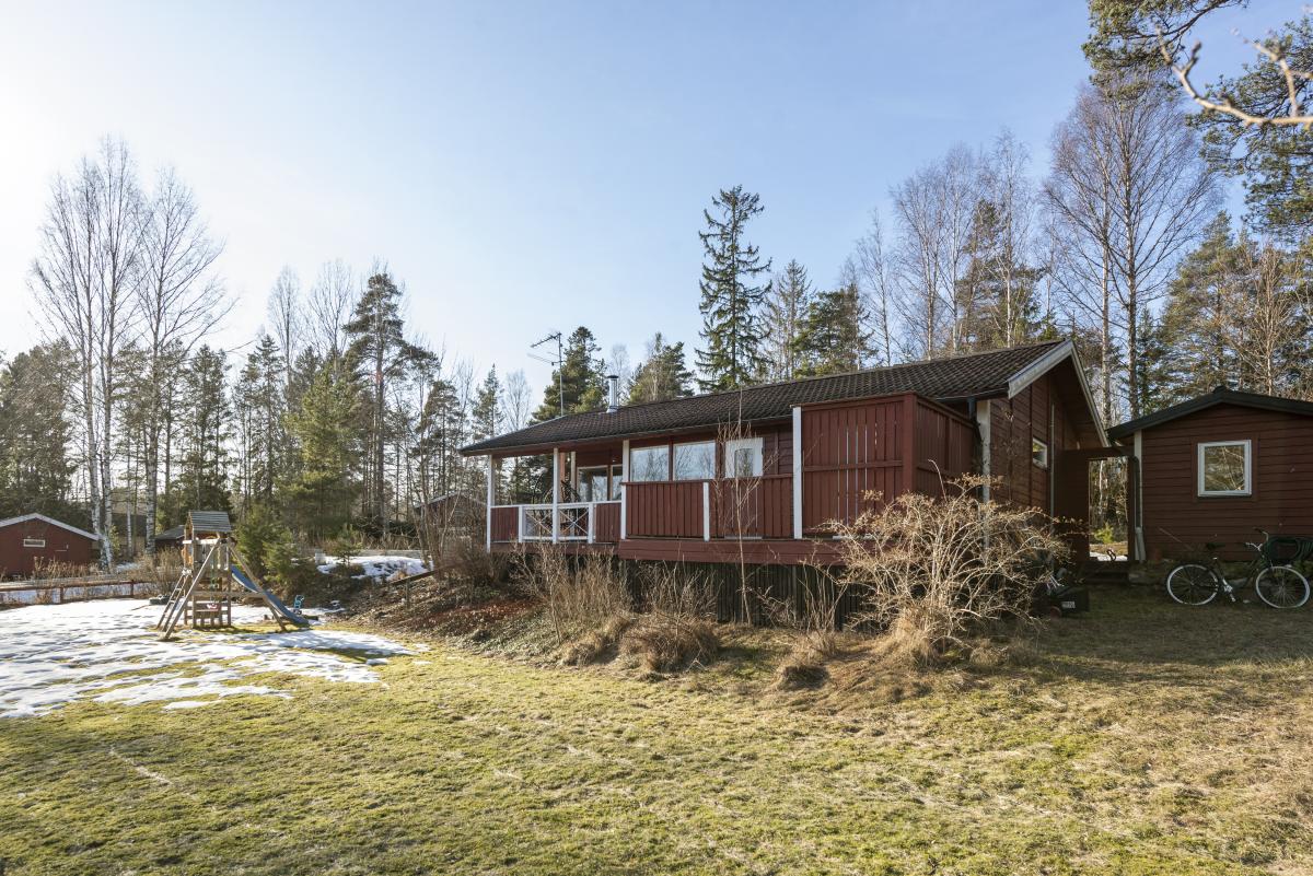 Trivsamt fritidshus med permanentstandard. Vardagsrum med kamin och ny luftvärmepump och utgång till altan under tak. Kök med rymlig matplats vid fönster. Två sovrum varav ett med utgång till balkong. Nyrenoverat stort badrum med klinkergolv och helkaklade väggar, här finns tvättmaskin och torktumlare. Kommunalt vatten och avlopp och fiber finns i huset. Gäststuga, förråd och vedförråd. Uteplats med SPA-Bad från 2023. Bra läge i området. Fastigheten ligger i populära Enviken. Inom Enviken finns poolområde, strandbad, tennisbana, boulebana och fina gångvägar inom området. Det är några kilometer till Bergshamra där restaurang, matbutik, vårdcentral, förskola och skola finns. Nära SL-buss.
