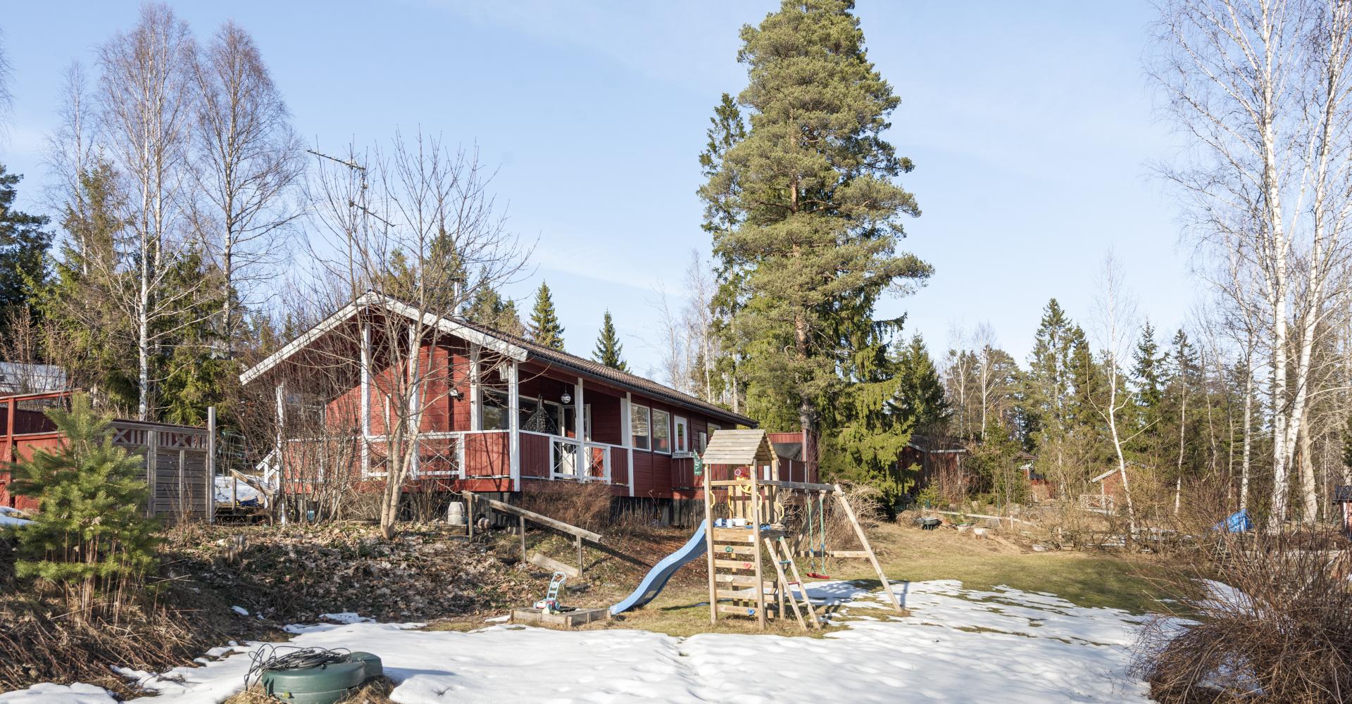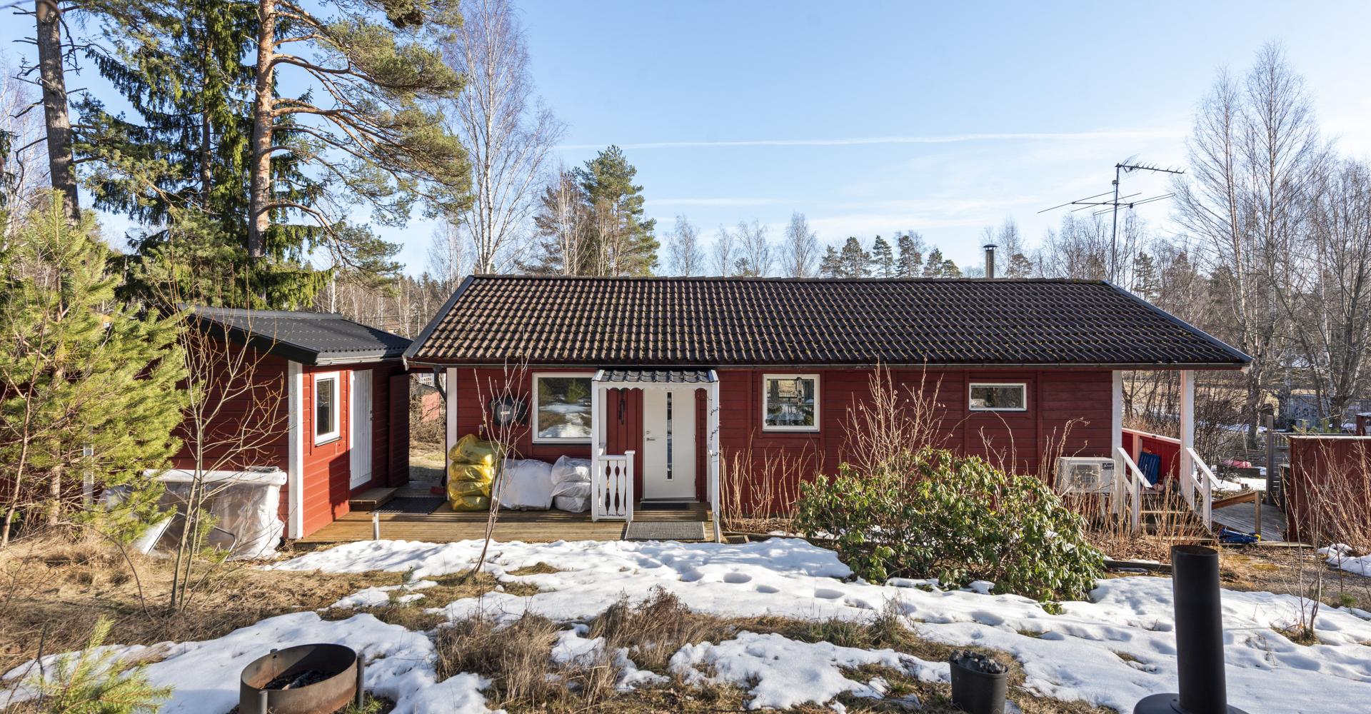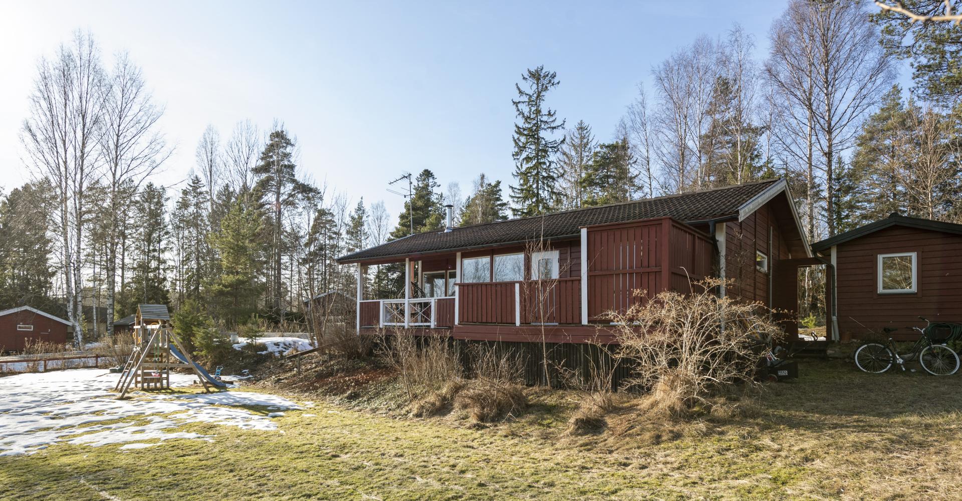 Trivsamt fritidshus med permanentstandard. Vardagsrum med kamin och ny luftvärmepump och utgång till altan under tak. Kök med rymlig matplats vid fönster. Två sovrum varav ett med utgång till balkong. Nyrenoverat stort badrum med klinkergolv och helkaklade väggar, här finns tvättmaskin och torktumlare. Kommunalt vatten och avlopp och fiber finns i huset. Gäststuga, förråd och vedförråd. Uteplats med SPA-Bad från 2023. Bra läge i området. Fastigheten ligger i populära Enviken. Inom Enviken finns poolområde, strandbad, tennisbana, boulebana och fina gångvägar inom området. Det är några kilometer till Bergshamra där restaurang, matbutik, vårdcentral, förskola och skola finns. Nära SL-buss.