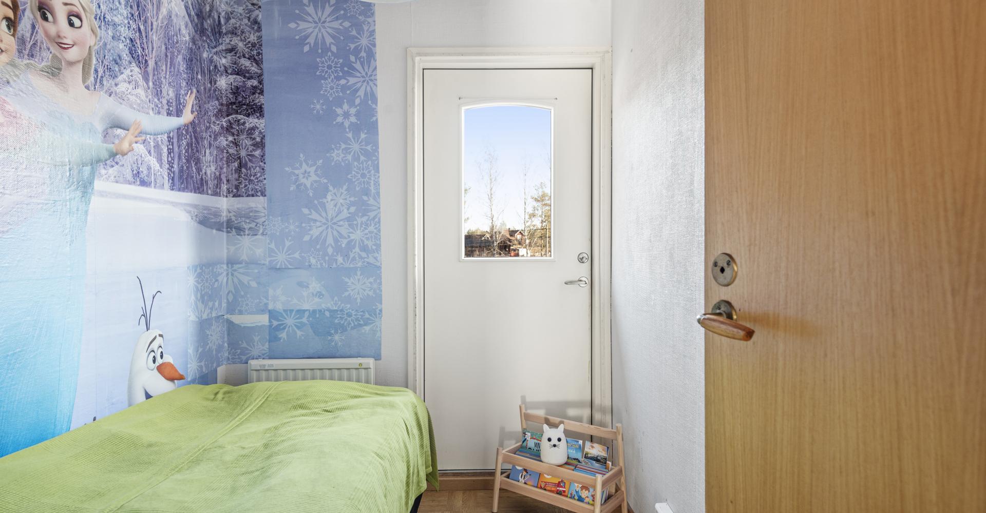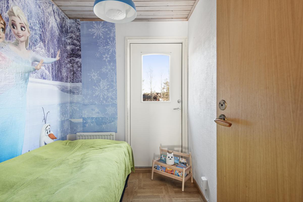 Sovrum med laminatgolv, tapet.