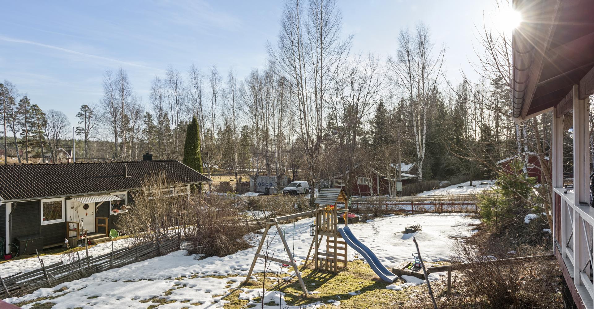 Hållplats Svensboda vägskäl ligger c:a 2 km från fastigheten och har bra turtäthet med bussarna 620 och 644. Buss 620X går några hundra meter från fastigheten med lägre turtäthet.
