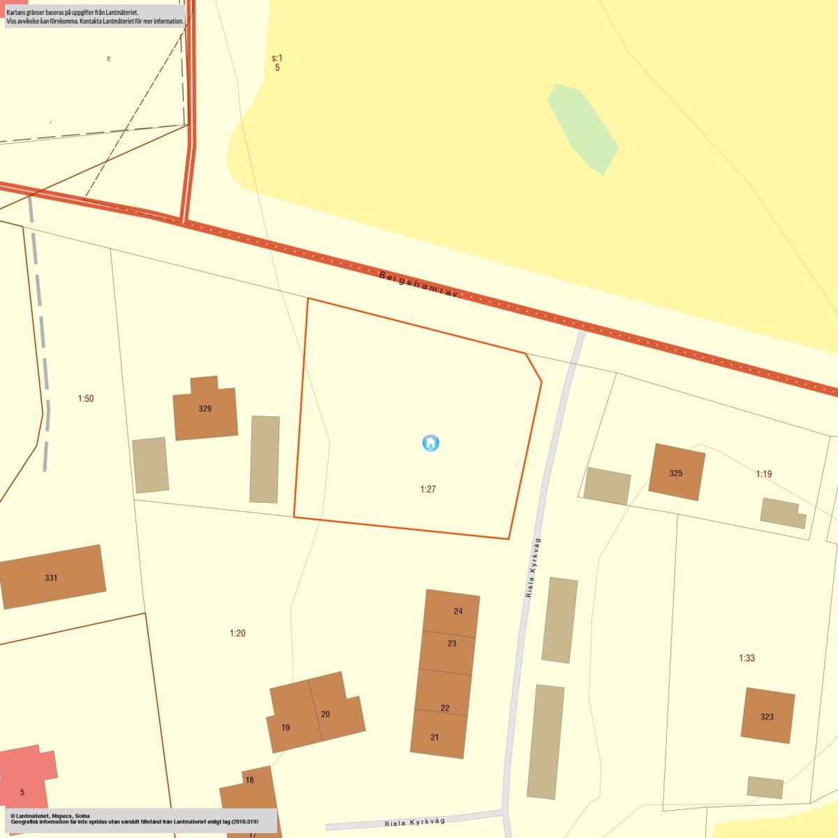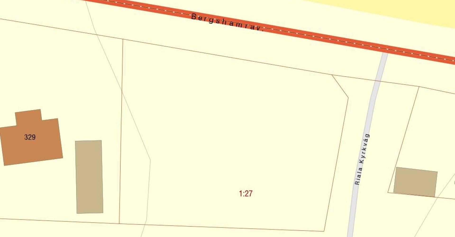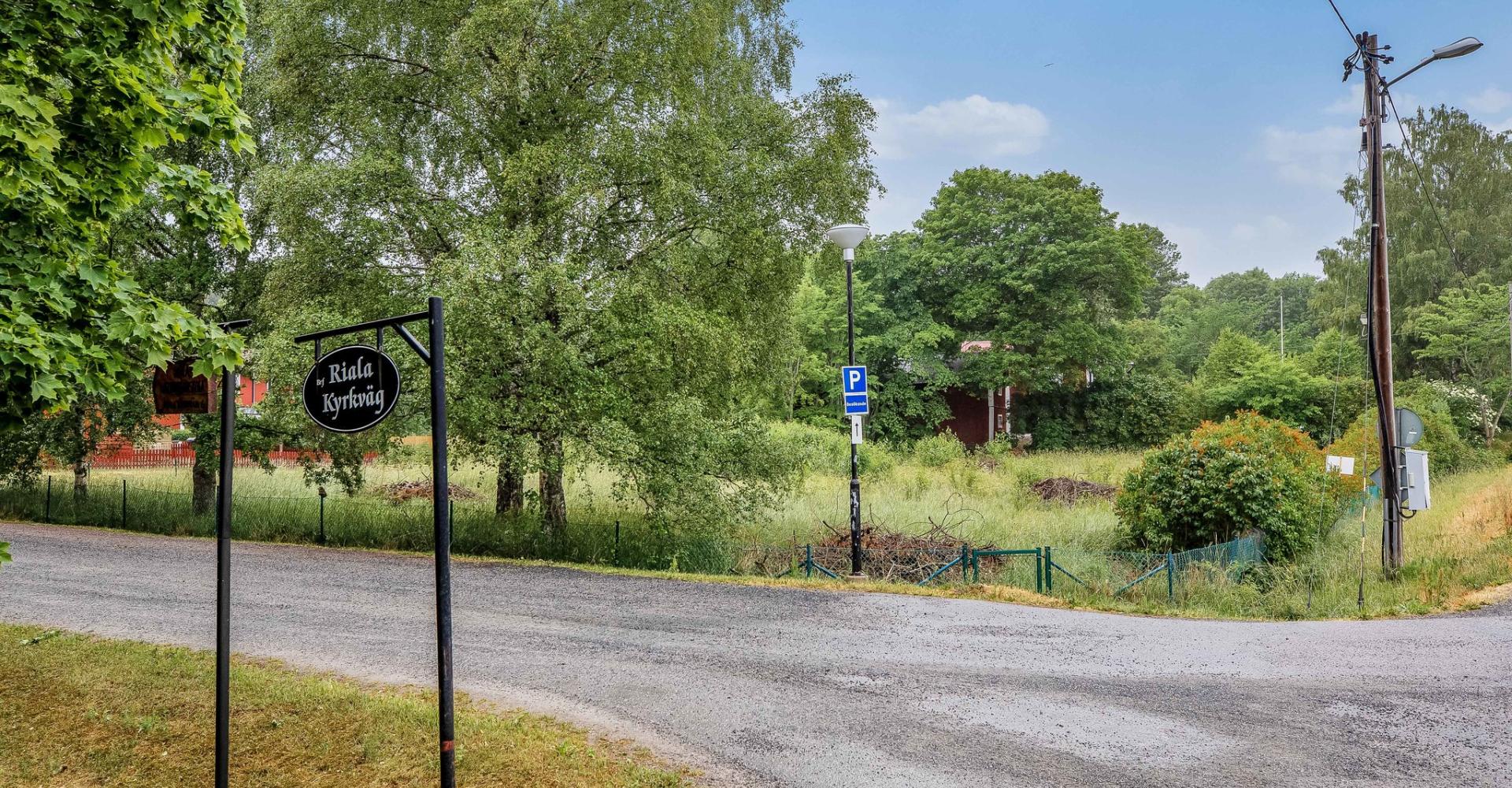 Tomten ligger i hörnan av Riala Kyrkväg och Bergshamravägen