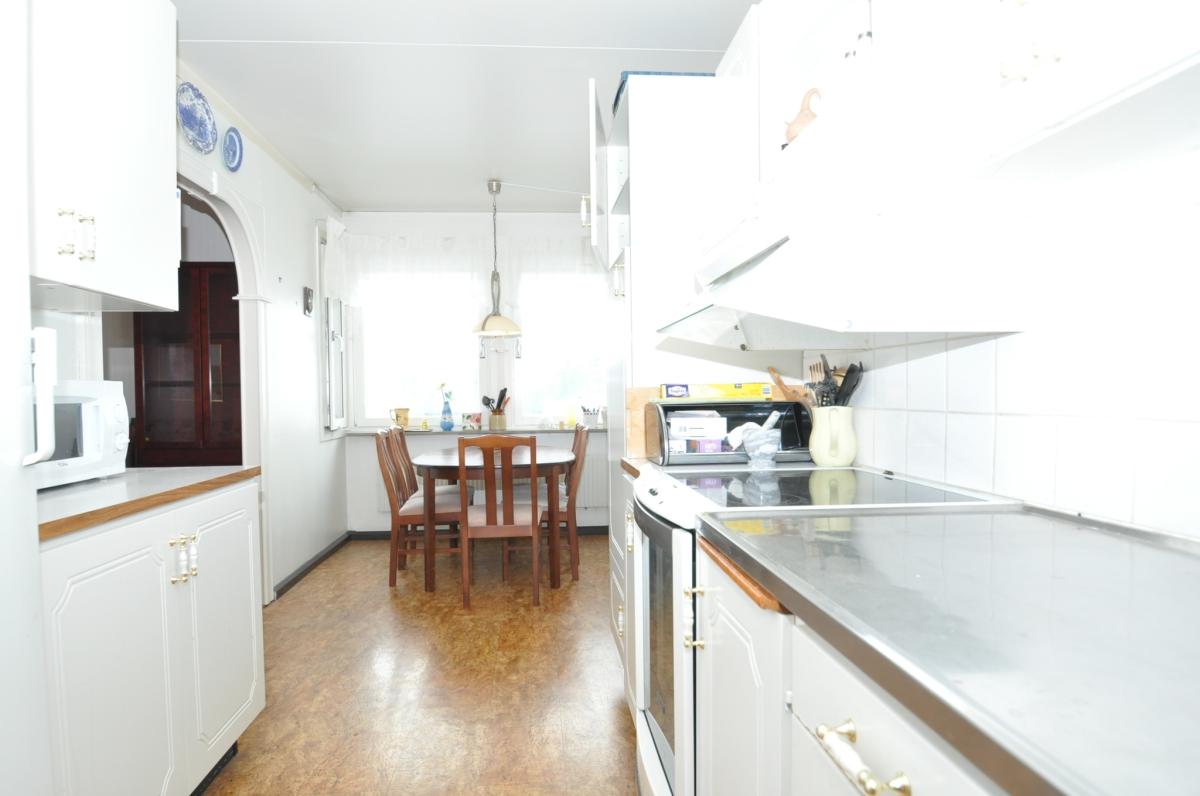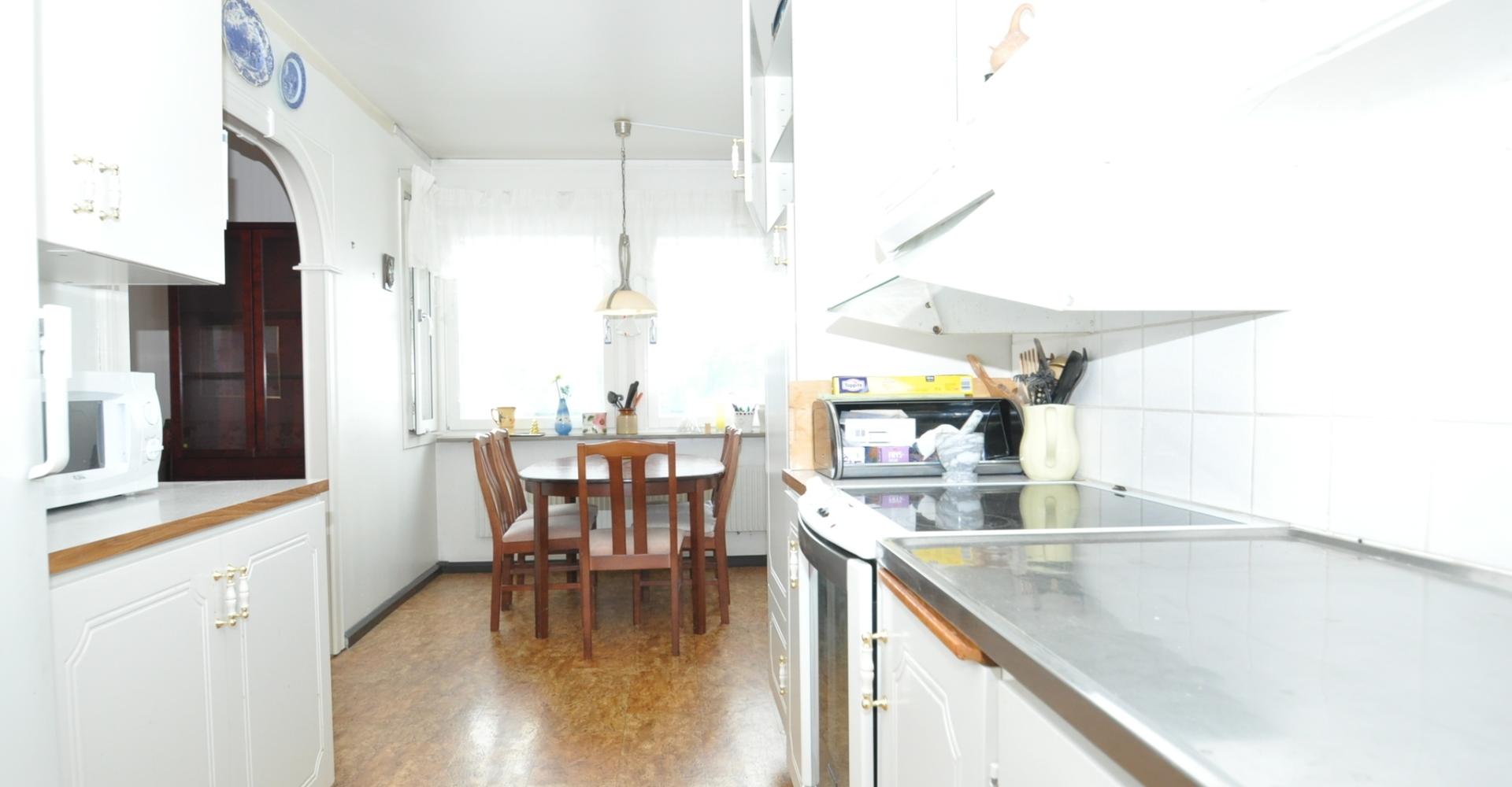 Kök: ljust trivsamt kök med matplats, kyl, frys, fläkt, microugn, spis med häll, bra med förvaringsskåp.