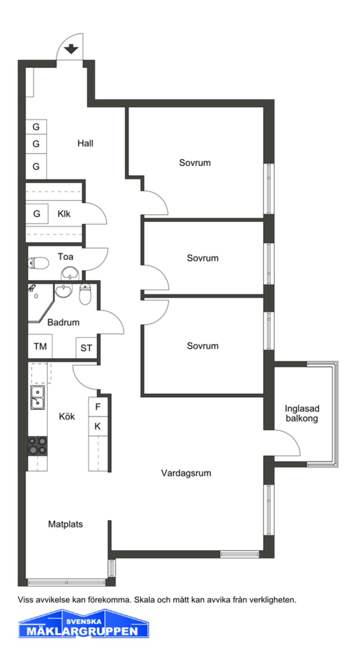 Välplanerad ljus hörnlägenhet med balkong