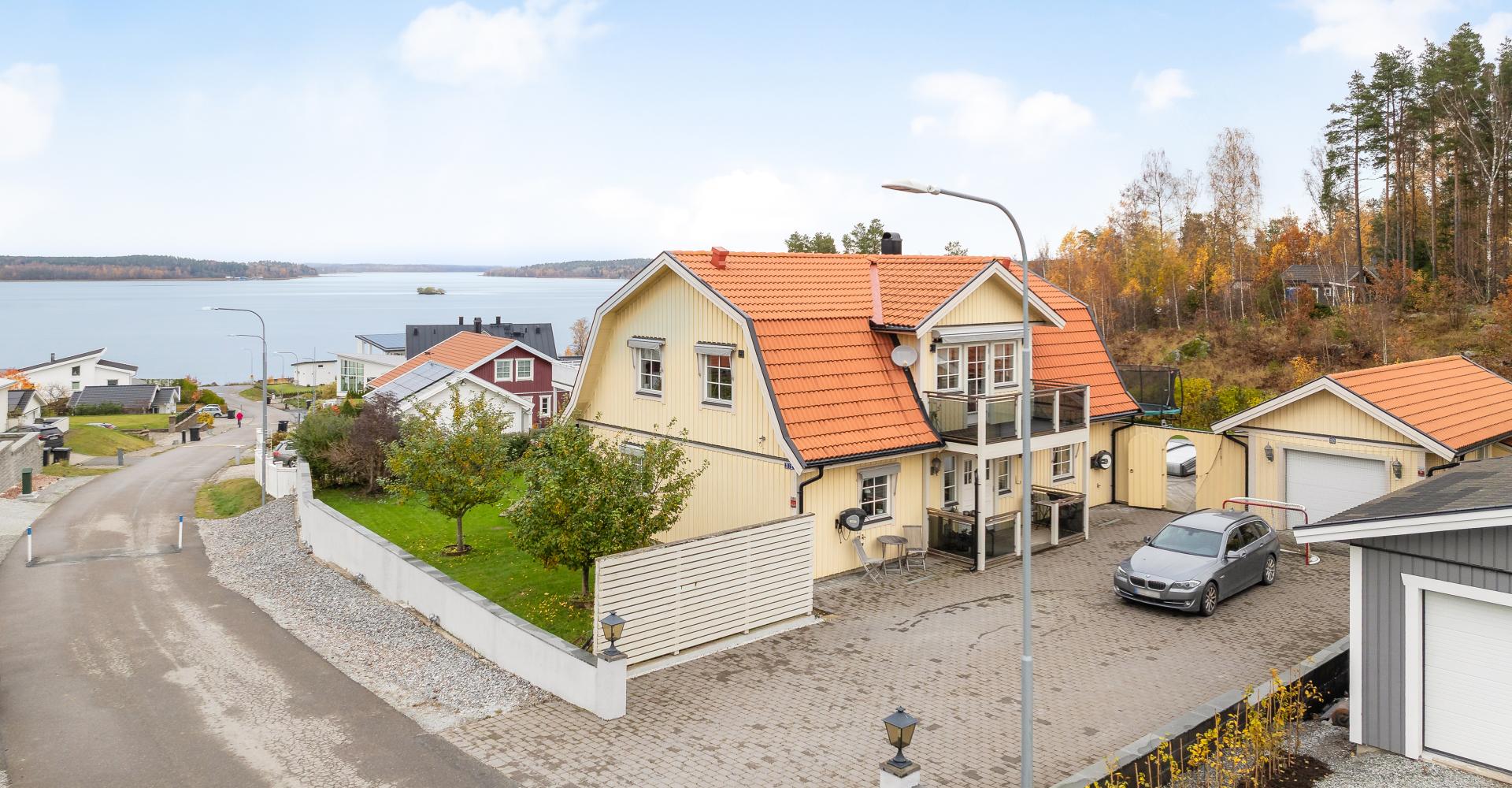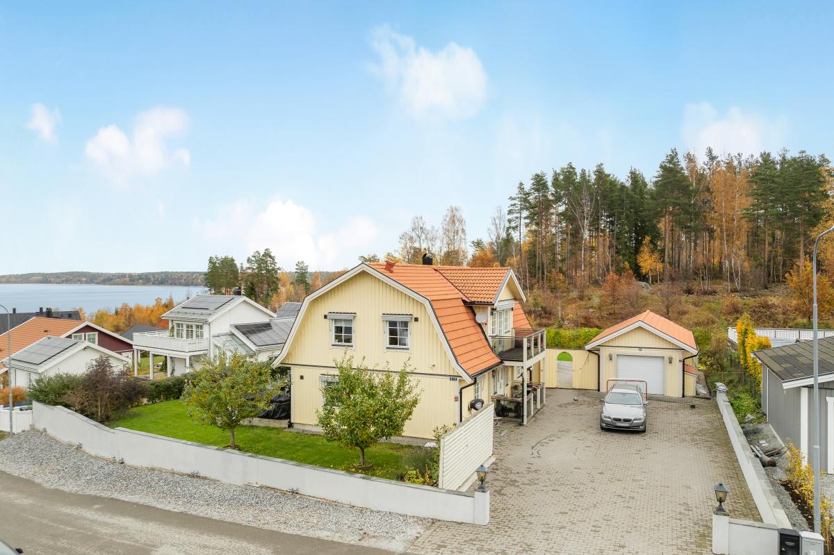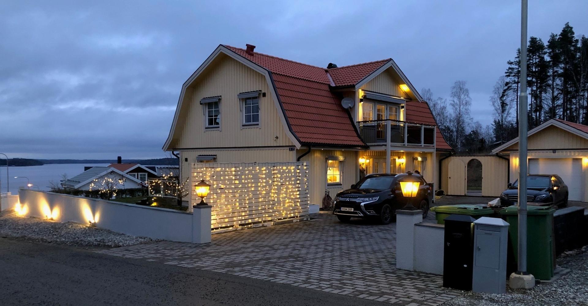 2-plansvilla från Floods Trähus, som byggts om och anpassats för att bättre passa ägarna, läget mot Mälaren och funktionaliteten.