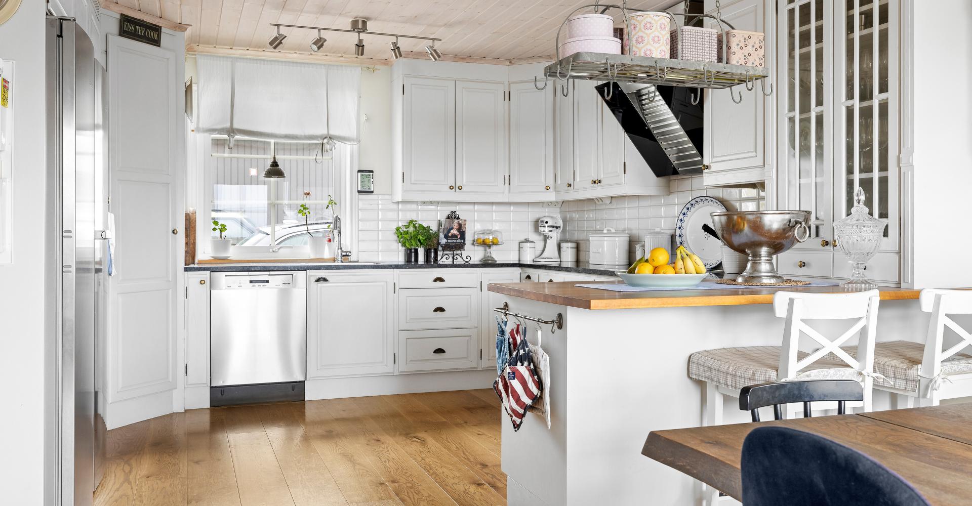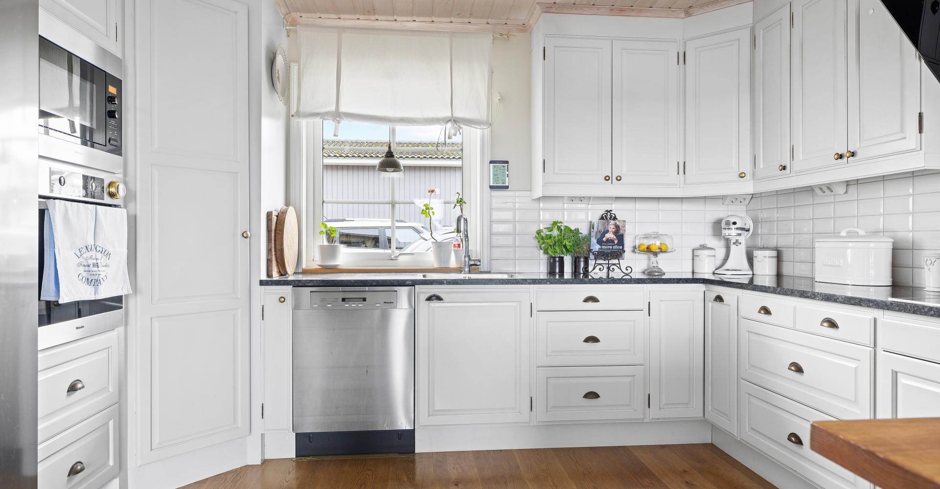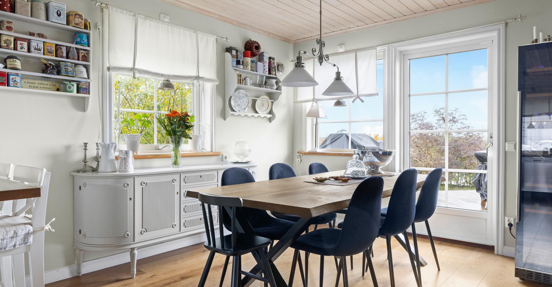 Exklusivt och påkostat lantkök från Alsikekök med stort hörnskafferi för matförvaring. Bänkskiva i granitsten och köks-ö med ekskiva med utskjut för frukosthäng/sittplatser. Vitt stänkskydd/kakel ovan bänk. Maskinell utrustning: Diskmaskin, spisfläkt, induktionshäll, hel kyl och frys samt ugn och mikro i bekväm arbetshöjd. Samtliga vitvaror från Miele. Köket är mycket väl tilltaget med rejäla arbetsytor. Den öppna storköksmiljön erbjuder plats för ett större matbord där 8-10 sittande får plats. Direkt utgång till altanen som erbjuder en härlig sjökontakt och magiska solnedgångar sommartid. Målade väggar och exklusivt enstavigt ekgolv från Rappgo mörkaskog. Här finns även takinfällda högtalare anslutna till Sonos ljudsystem.
