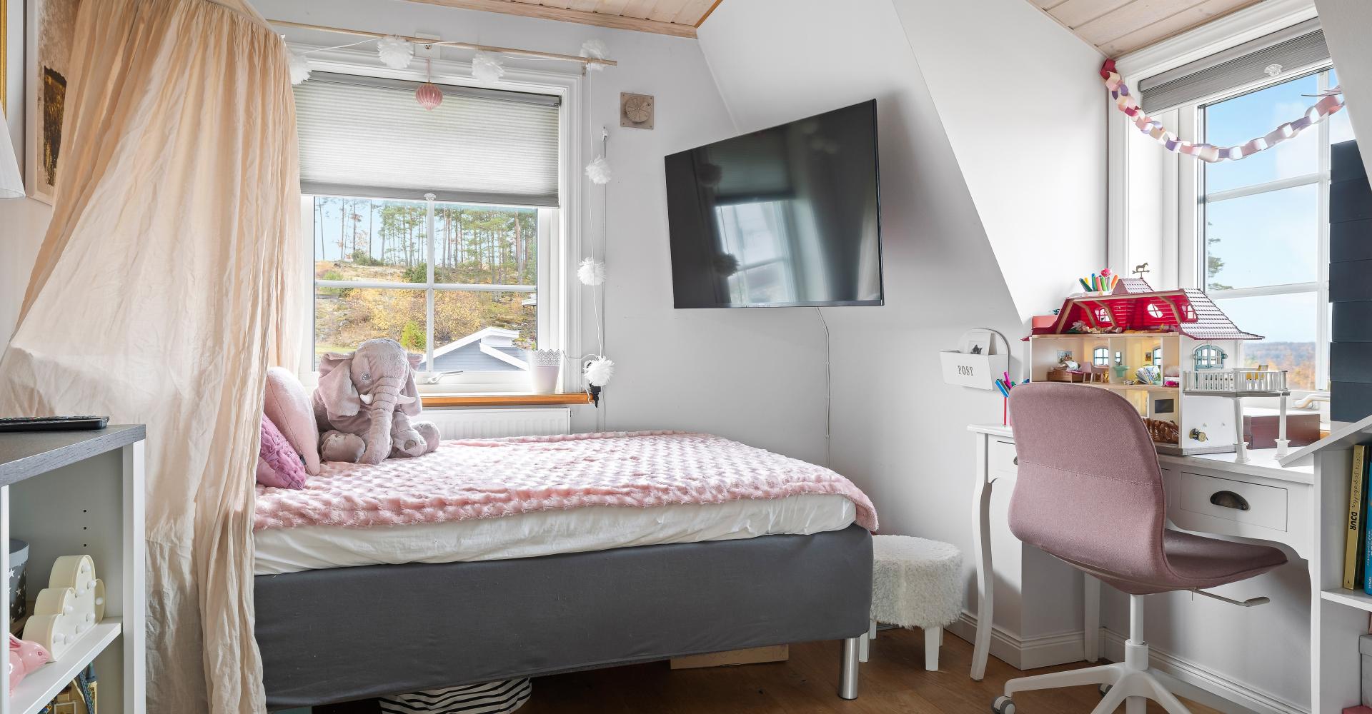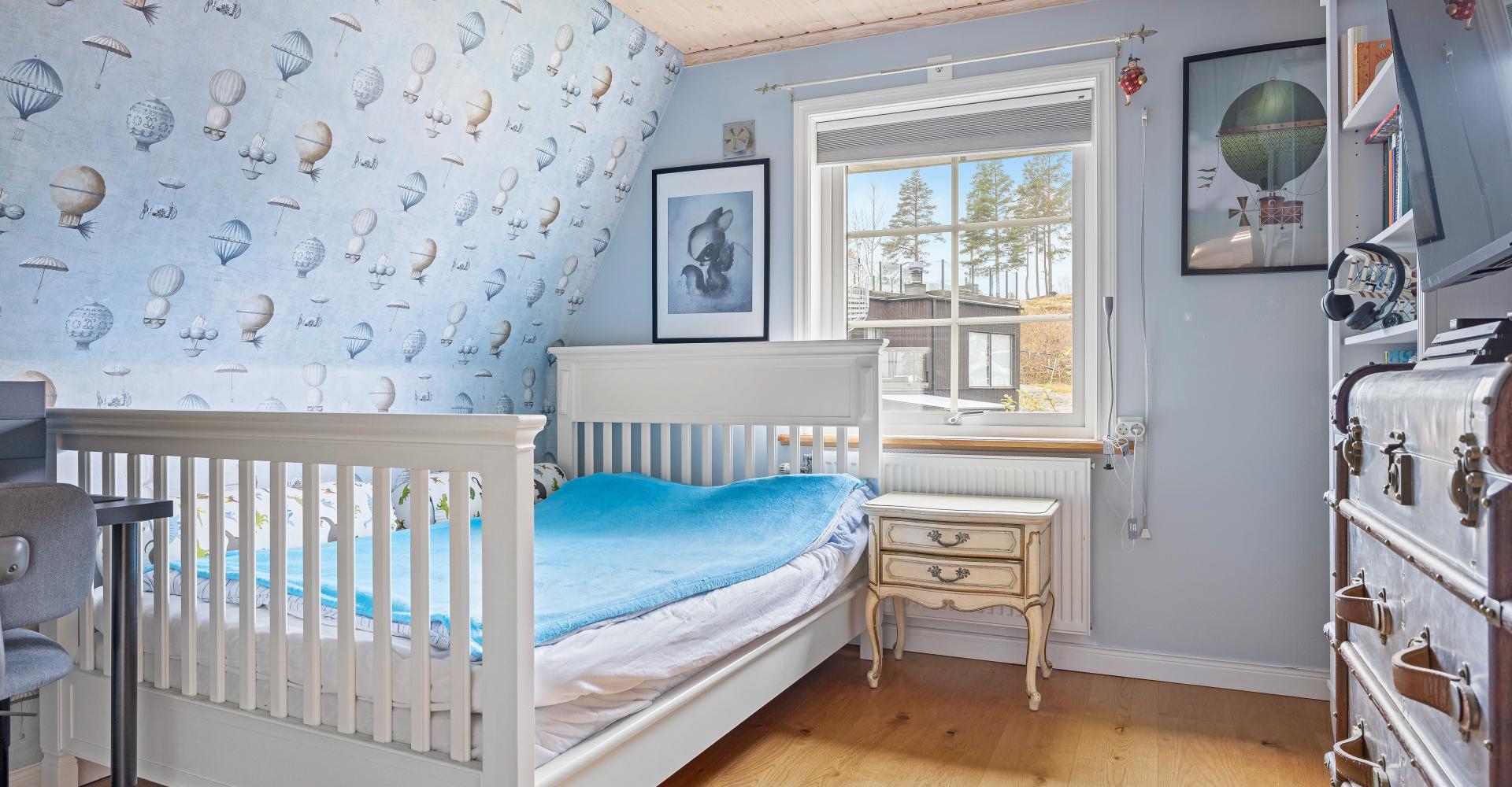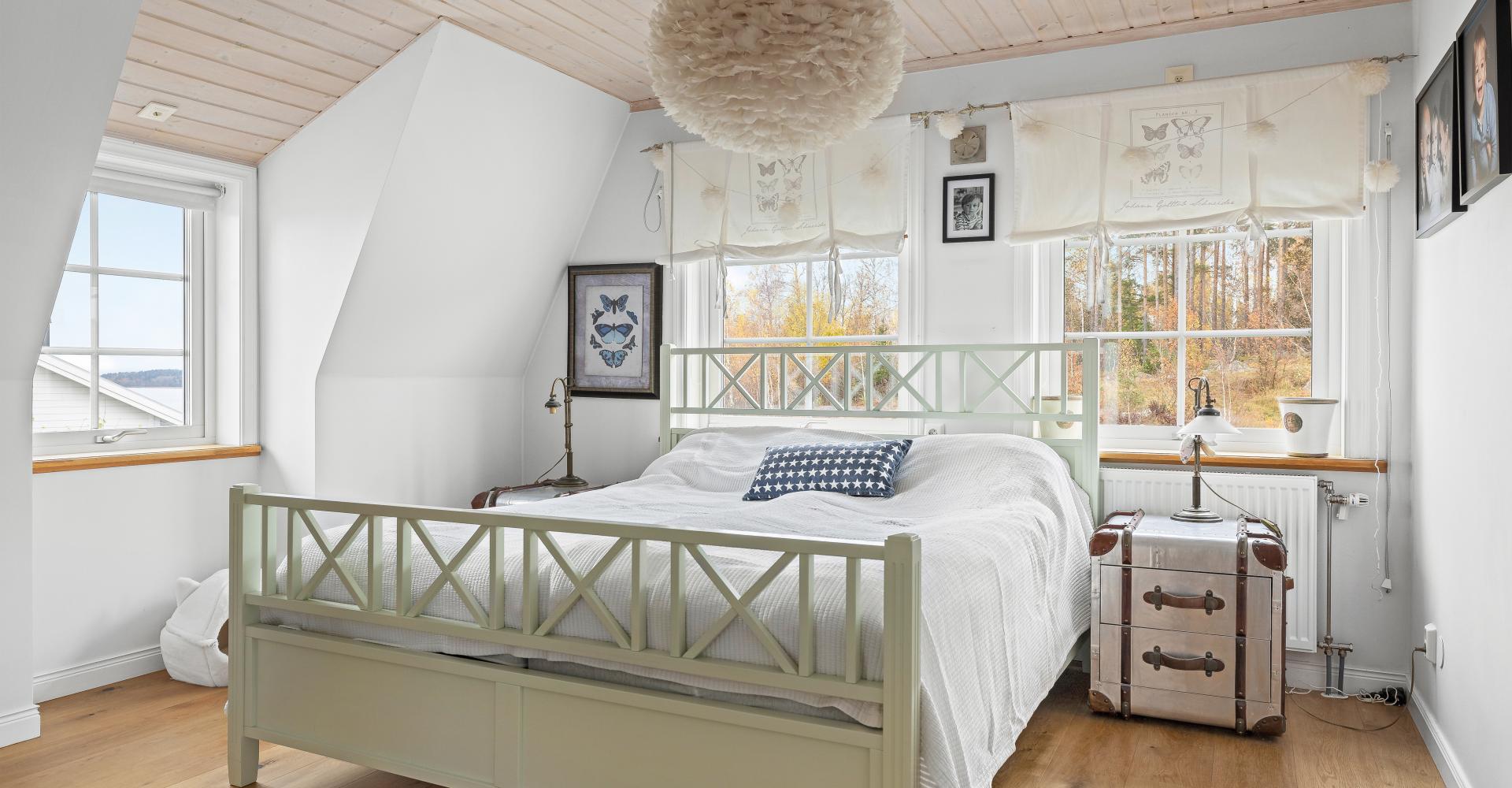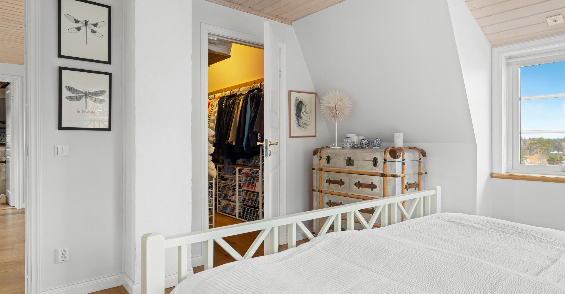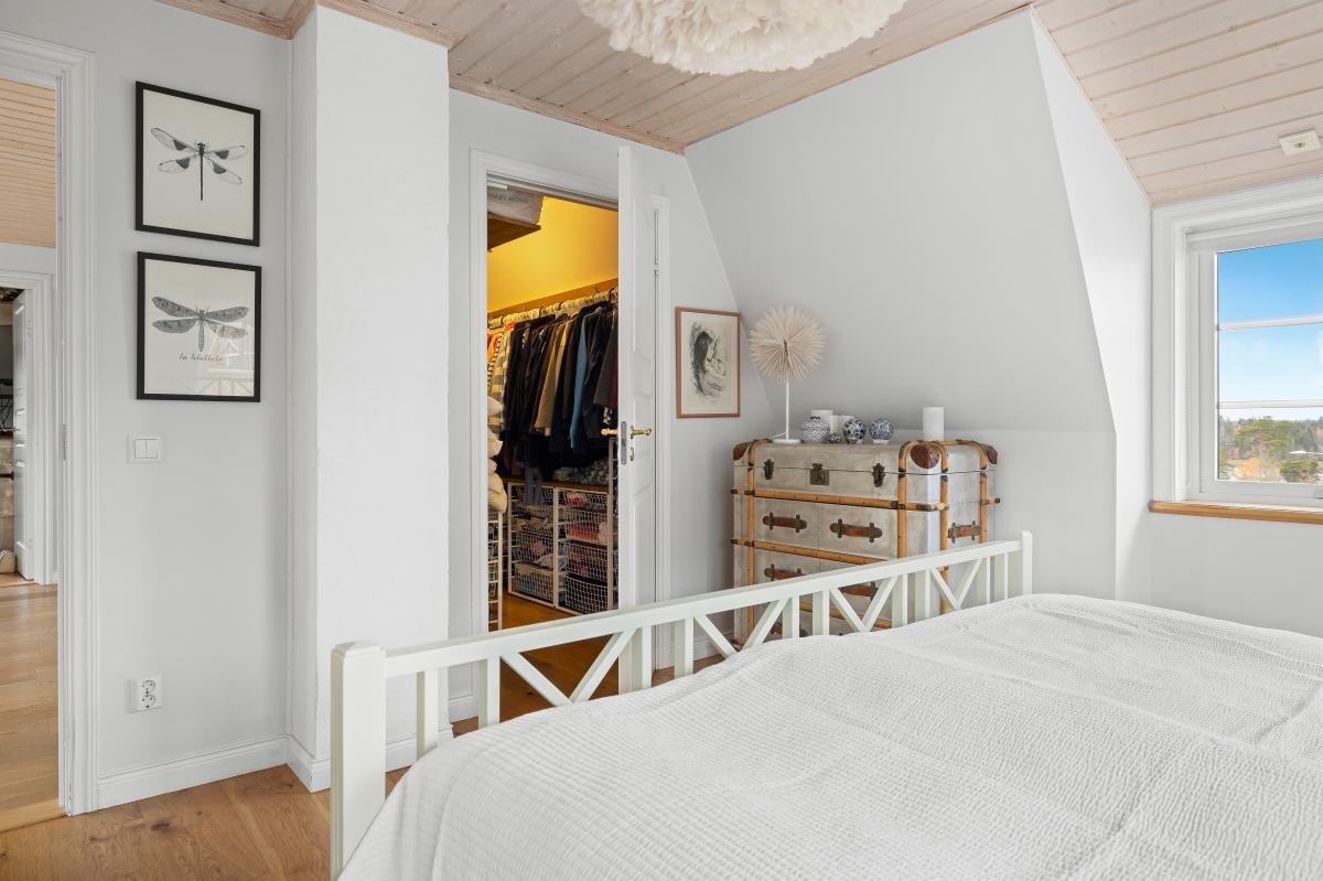 SOVRUM 1 Enstavigt trägolv och fönster i två väderstreck. Kupan med en magisk sjökontakt. Ingång till en stor och walk-in-closet som sväljer otroligt mycket kläder eller annan förvaring.