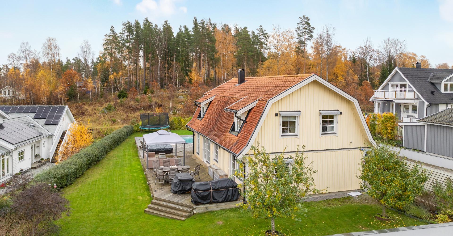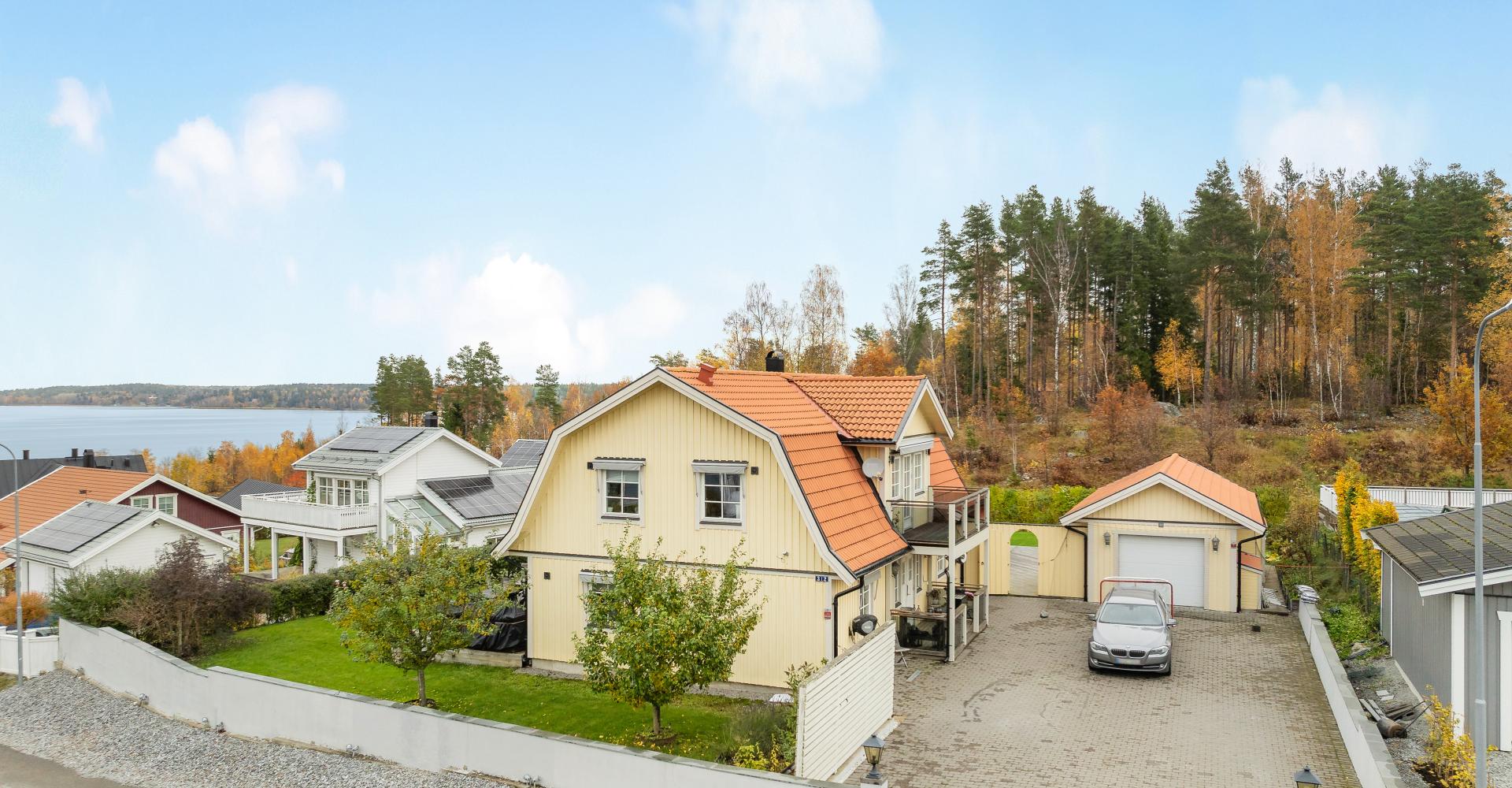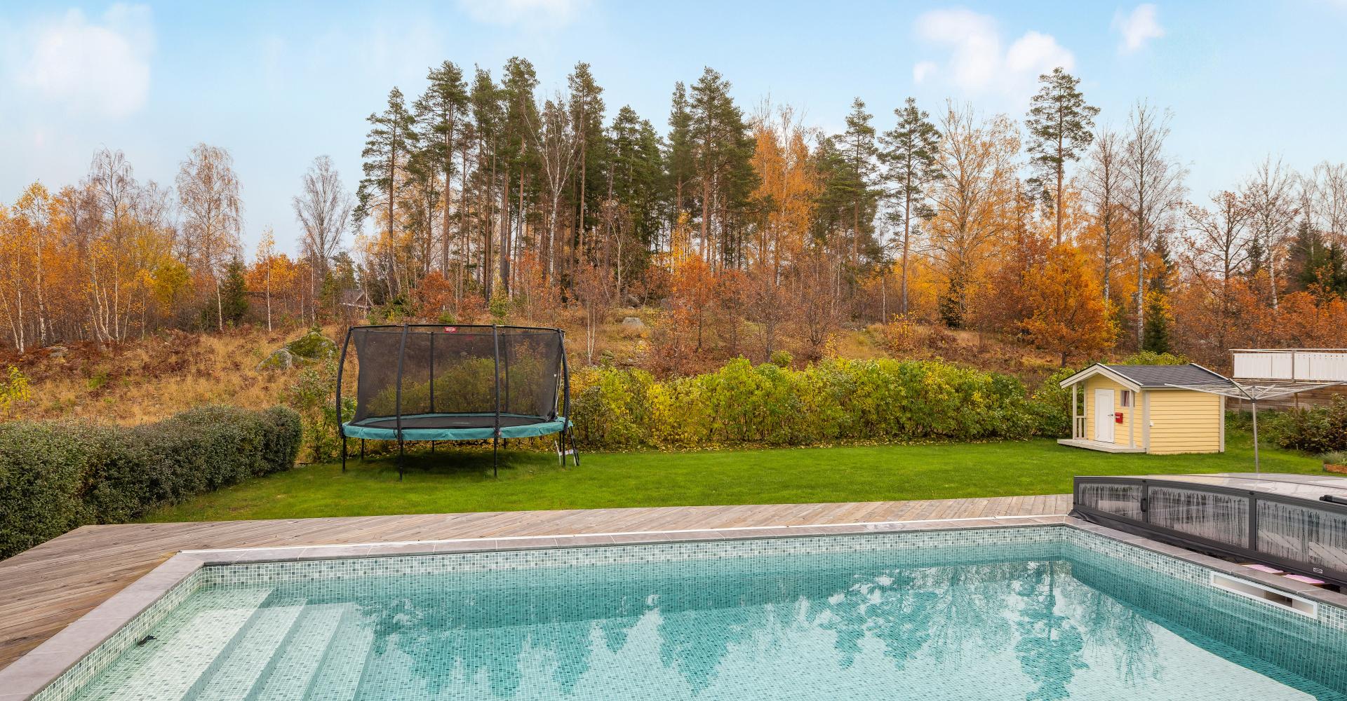 Välkommen till Tömvägen 32 och den fantastiskt fina 2-plansvillan med härligt läge och underbar sjöutsikt. Här finns en fint planerad trädgård med skyddat läge där ägarna under sommaren 2022 låtit uppföra en 4x8 meter stor modern saltvattenpool med pooltak. Här finns även ett stort trädäck som sträcker sig längs två hussidor samt en fin plan gräsmatta som inbjuder till lek och bus. Husets trädgård vetter mot allmänningen i bakkant och en rogivande miljö med djur och natur nära inpå.