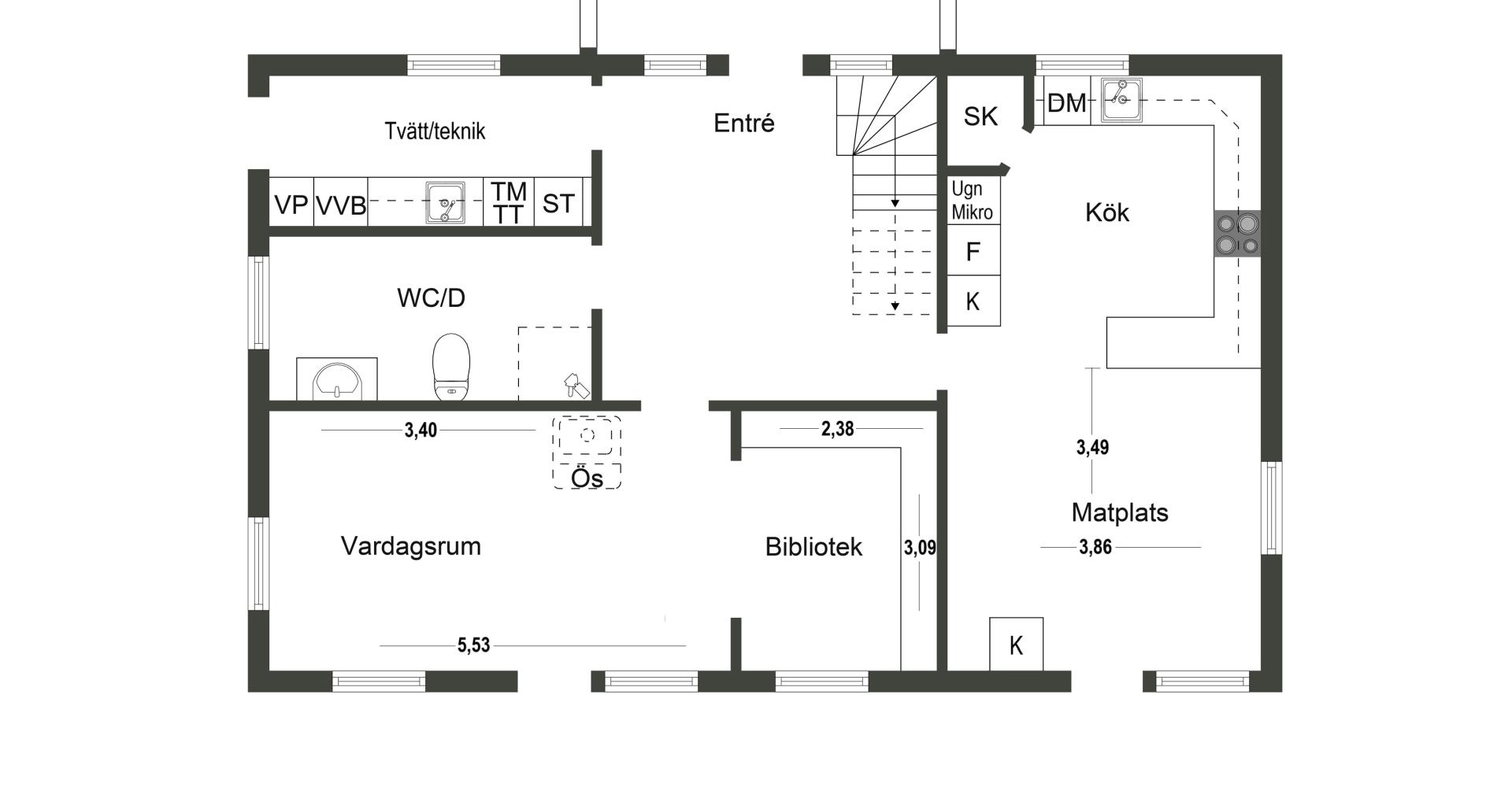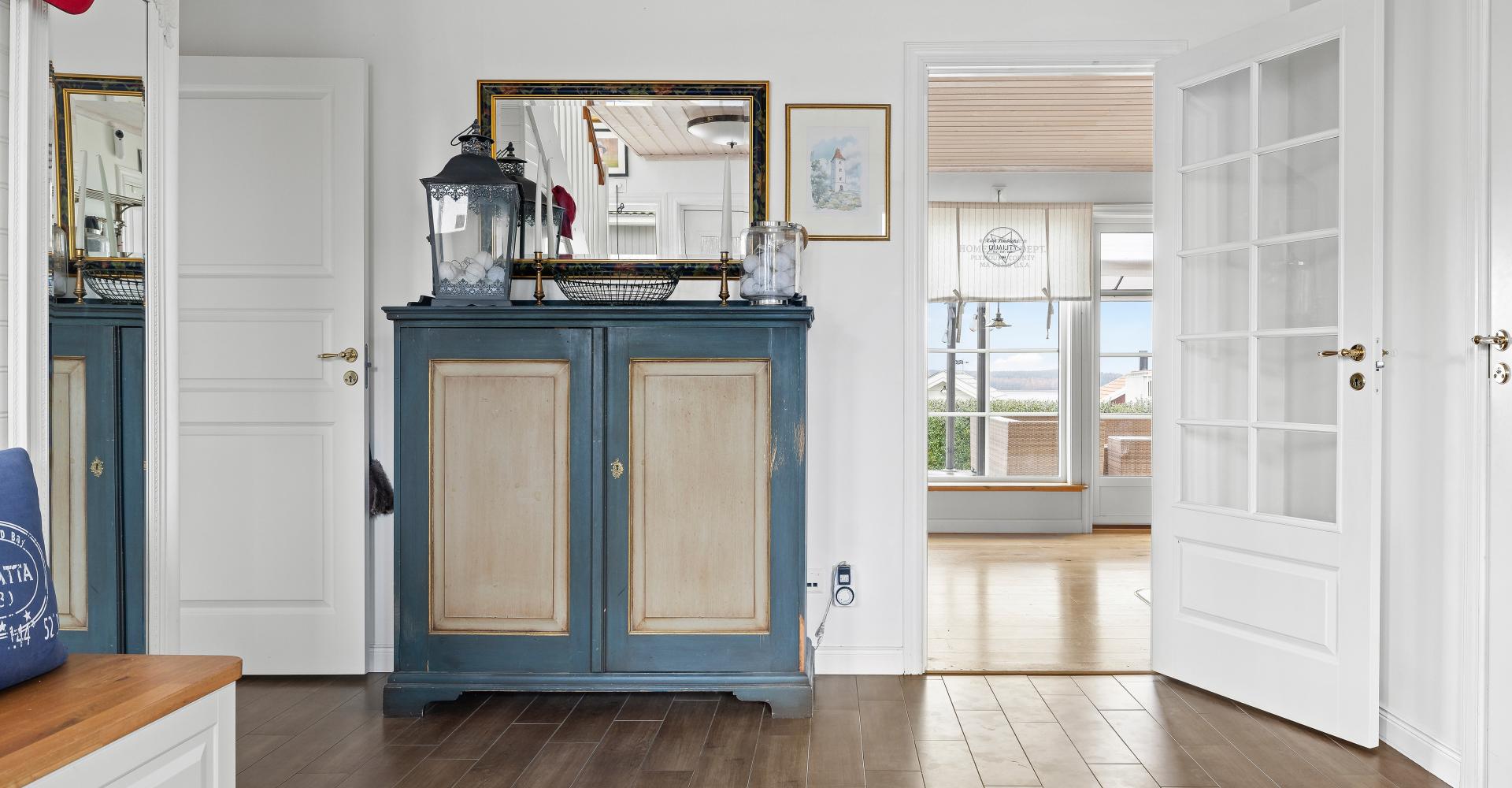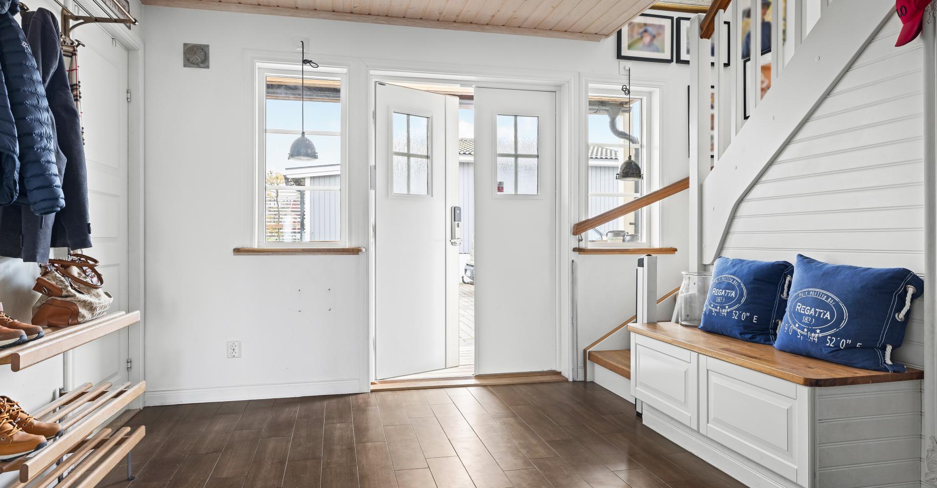 Hela entréplanet har skön vattenburen golvvärme från frånluftsvärmepumpen.