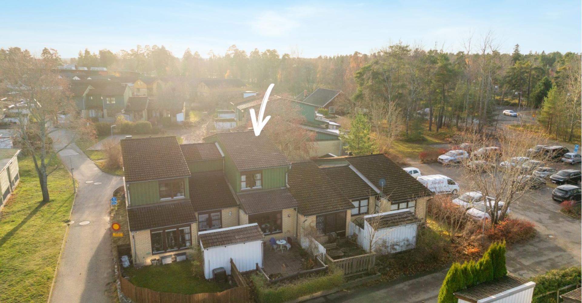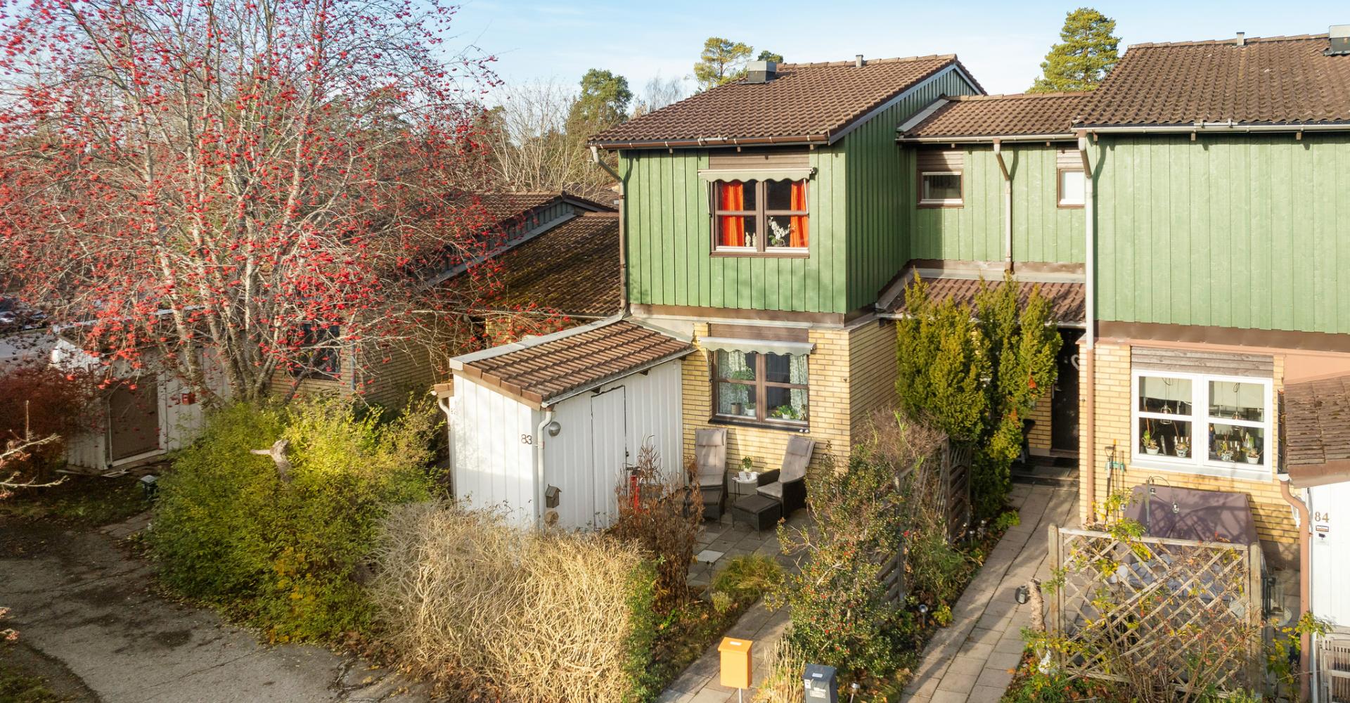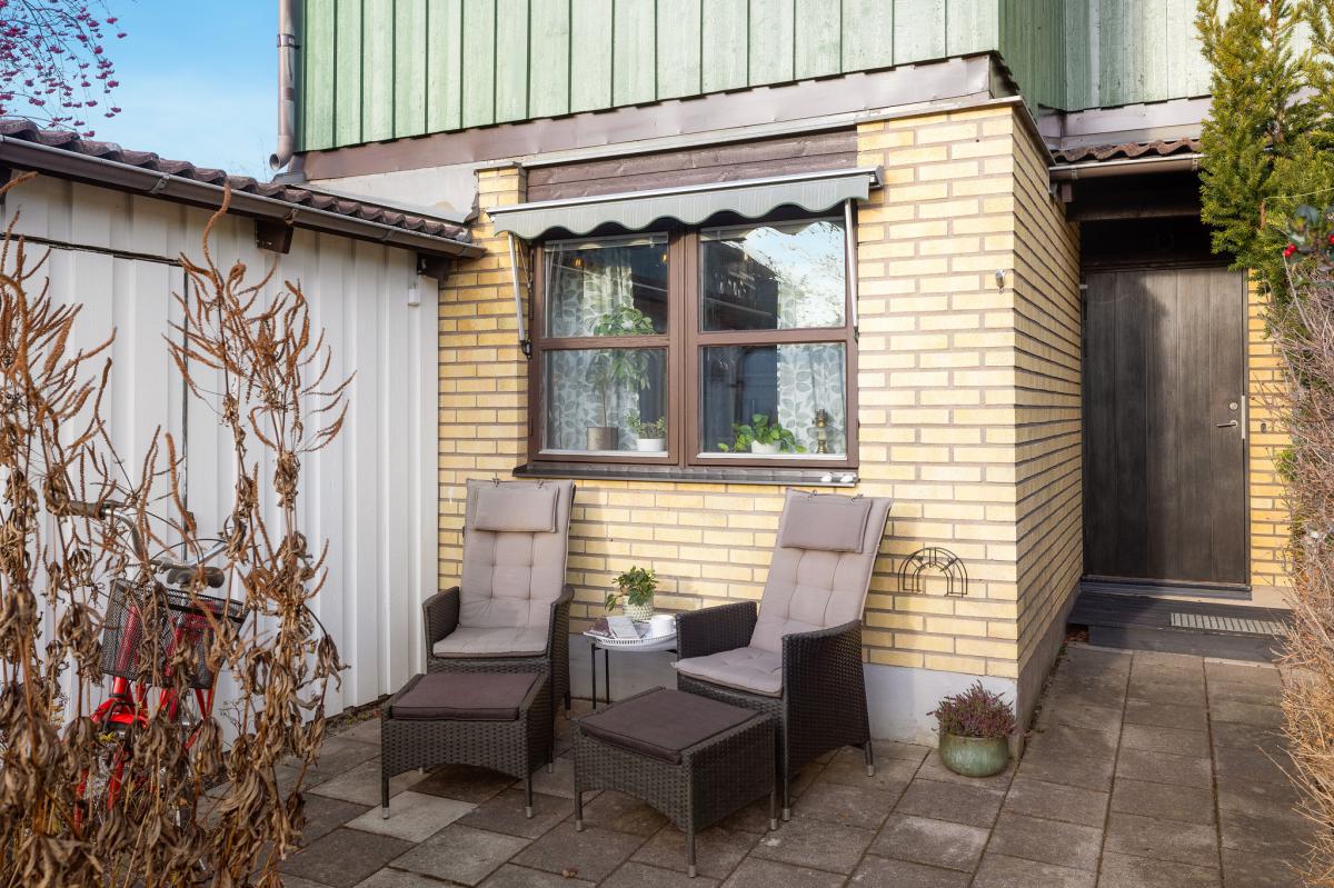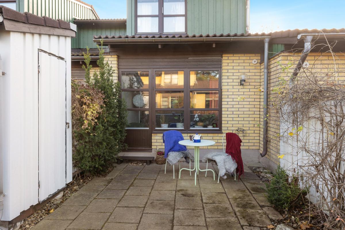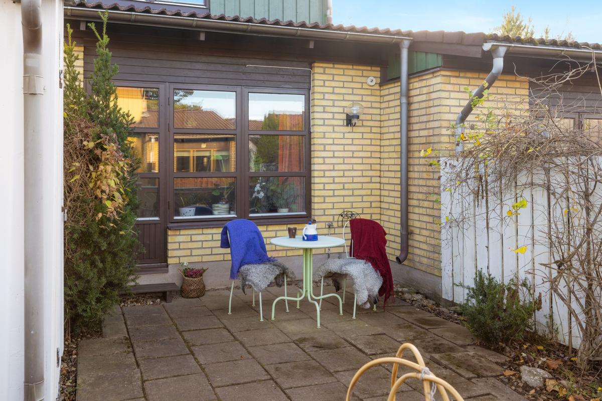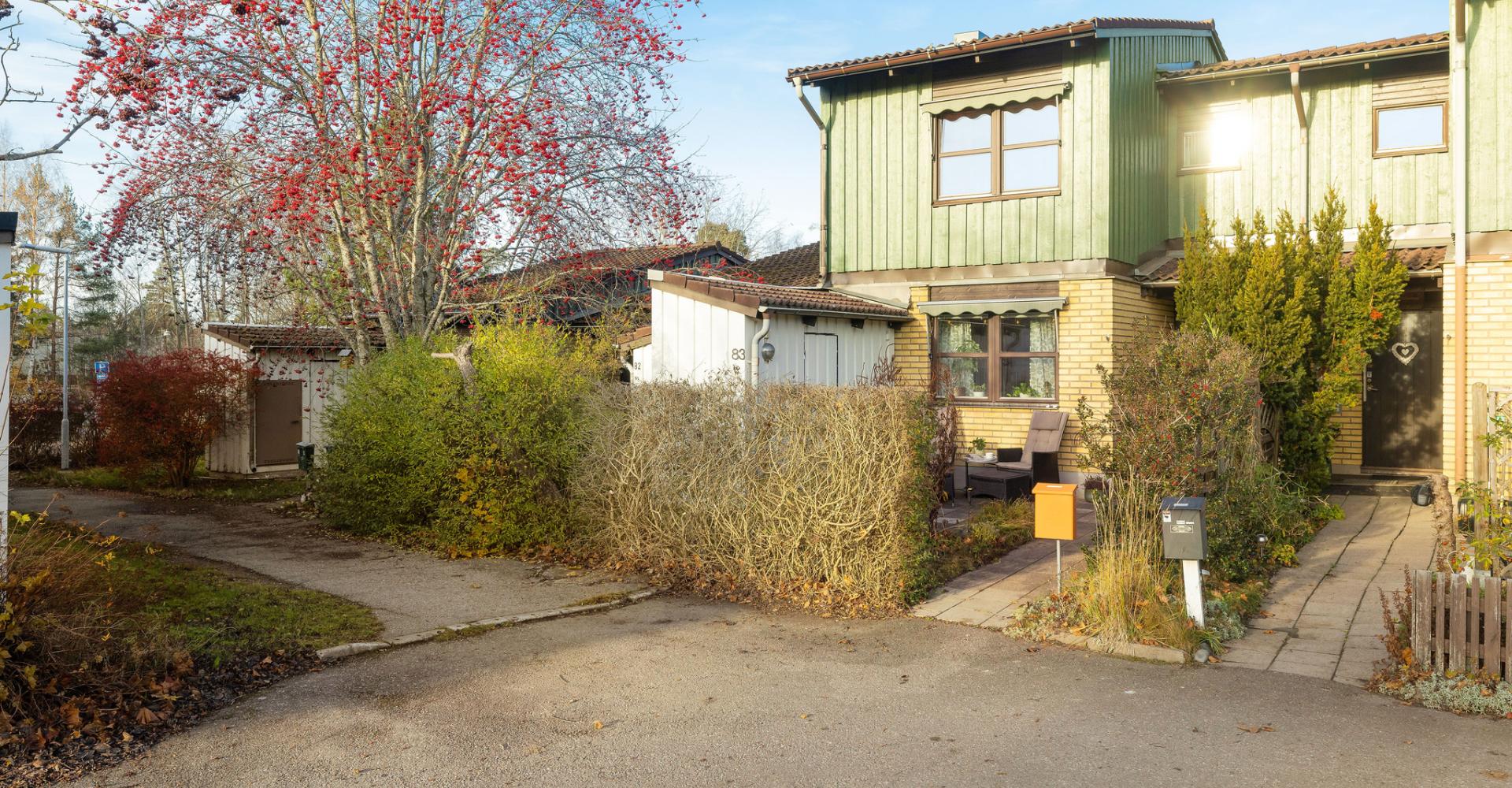 Radhus i barnvänligt område med närhet till goda kommunikationer. Vardagsrum med parkett och utgång till stensatt uteplats. Rymligt kök med matplats vid fönster. Stort rymligt badrum kombinerad tvättstuga. En trappa upp finns två rymliga sovrum och en walk in closet. Här finns också ett badrum.
