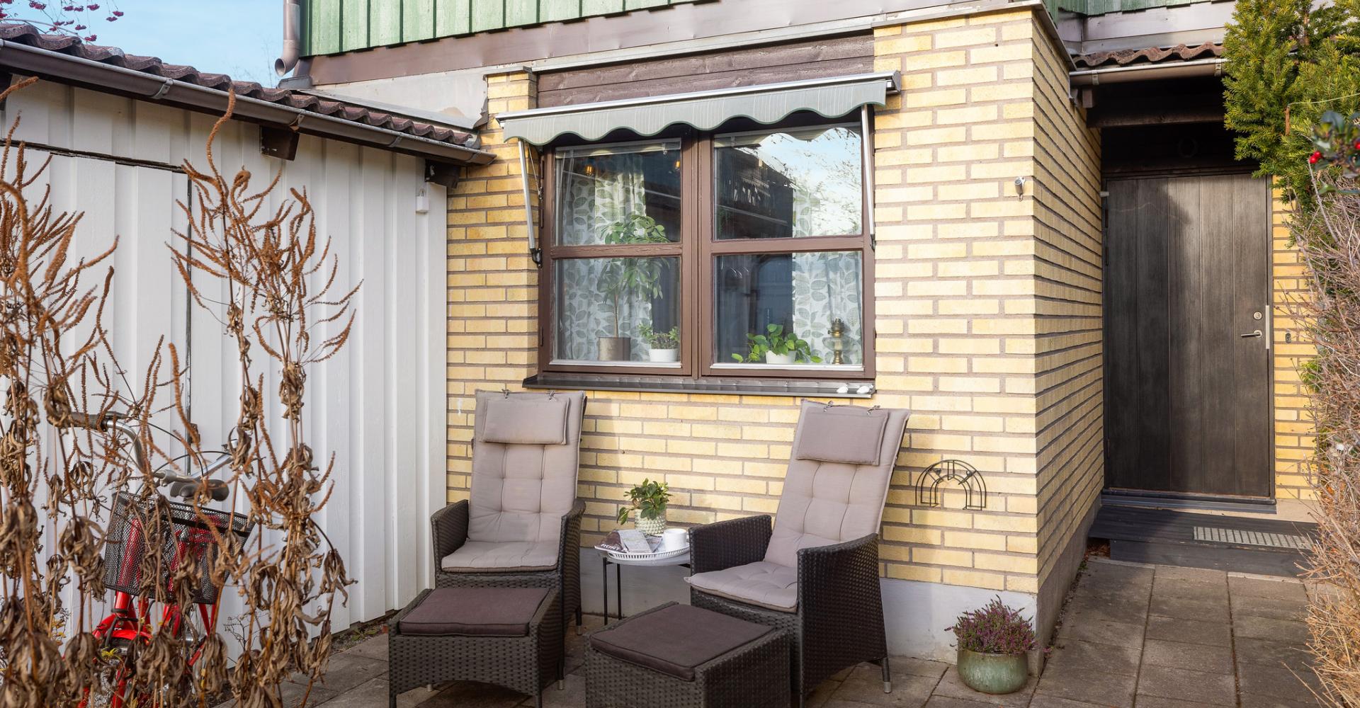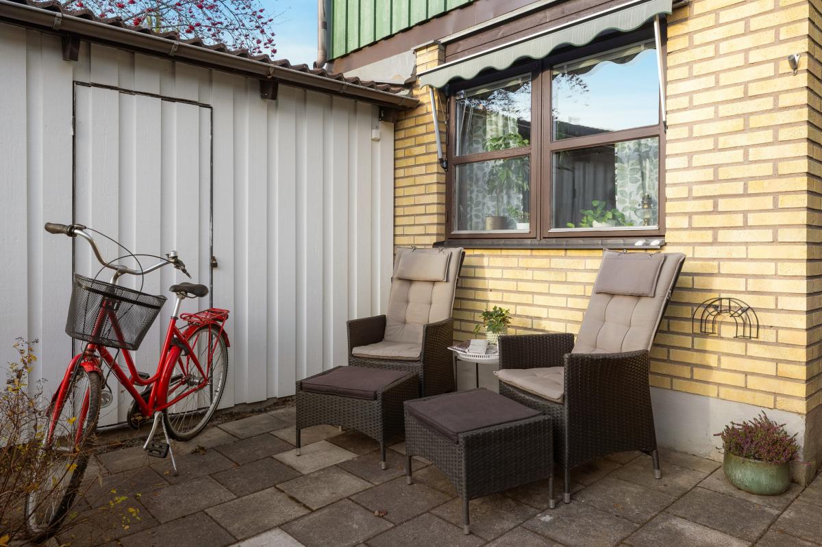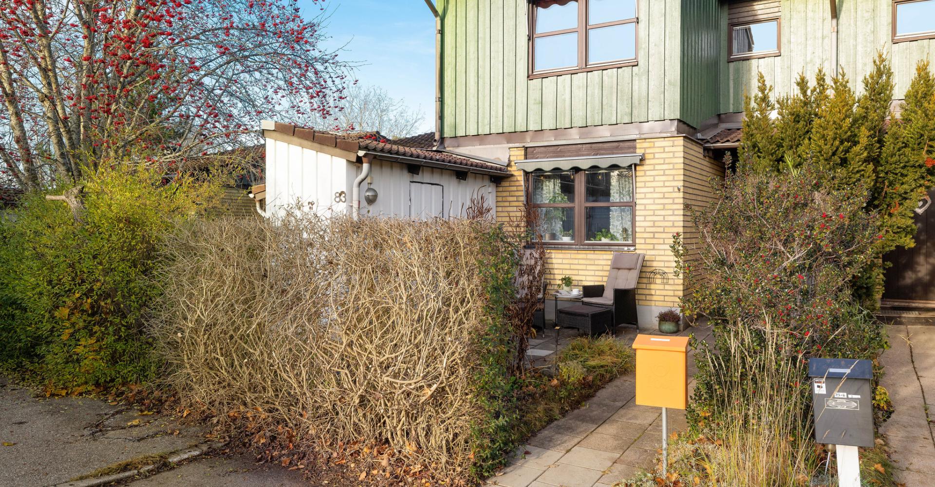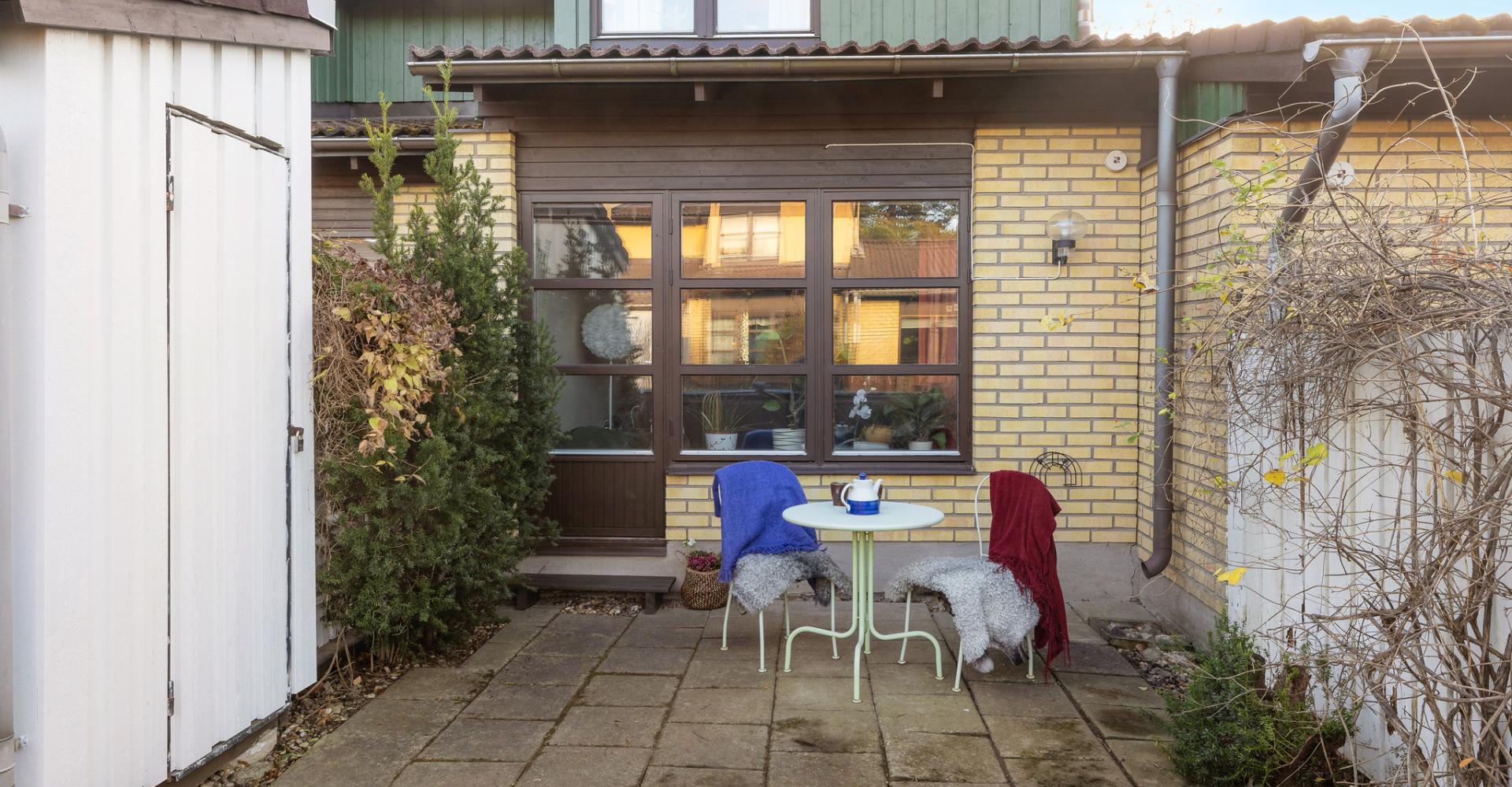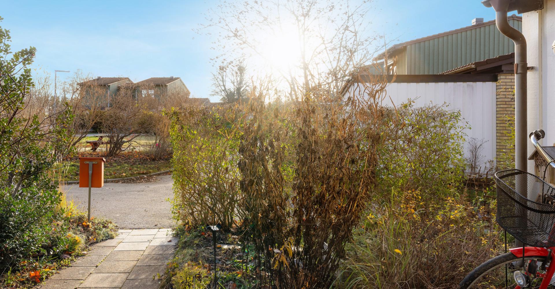 Radhus i barnvänligt område med närhet till goda kommunikationer. Vardagsrum med parkett och utgång till stensatt uteplats. Rymligt kök med matplats vid fönster. Stort rymligt badrum kombinerad tvättstuga. En trappa upp finns två rymliga sovrum och en walk in closet. Här finns också ett badrum.