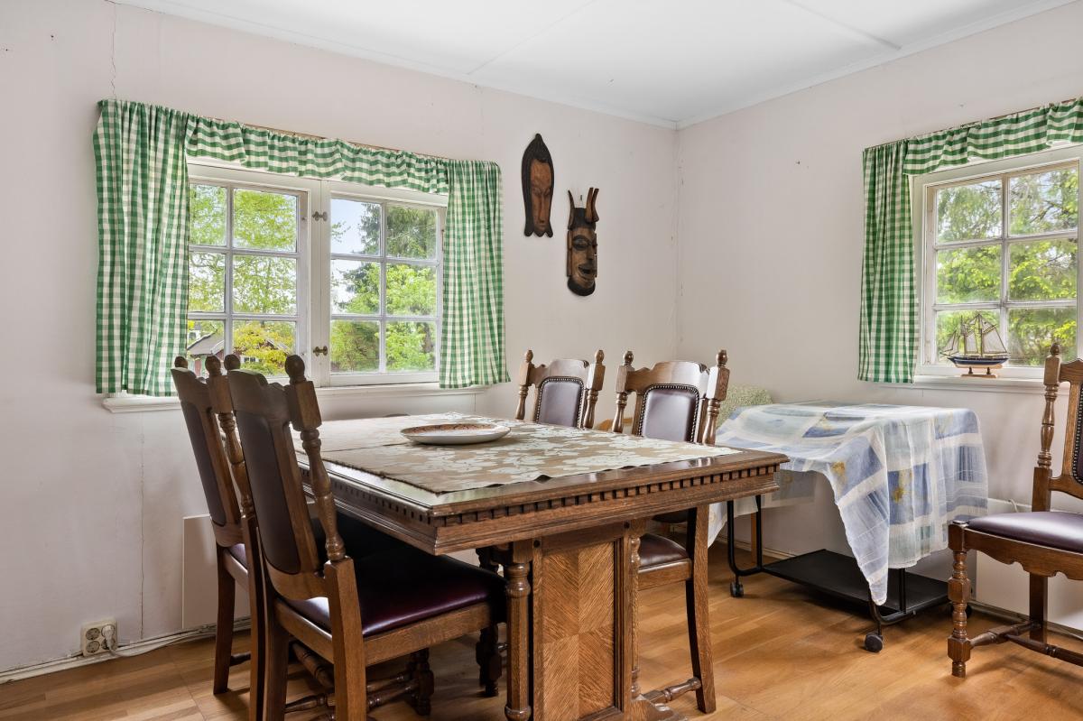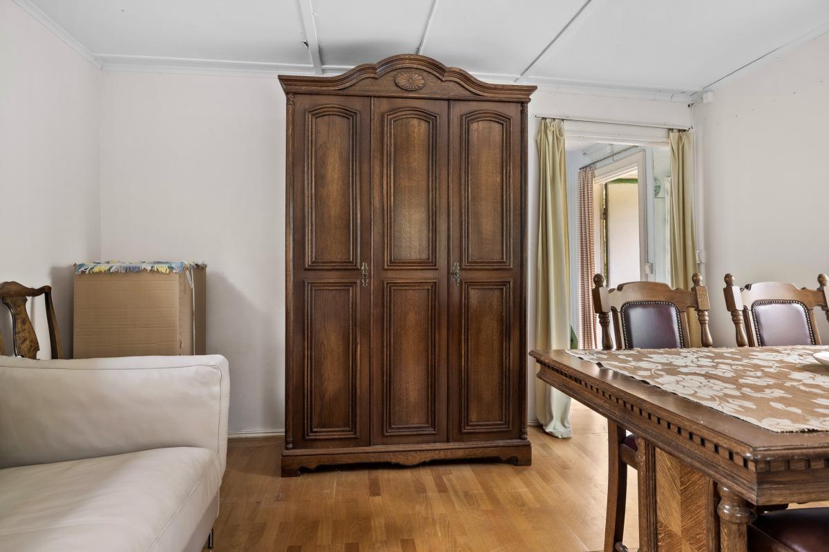 På övre plan finns sovrum med trägolv, panel på vägg samt målade väggar. Huset kan passa bra som ett gästhus.