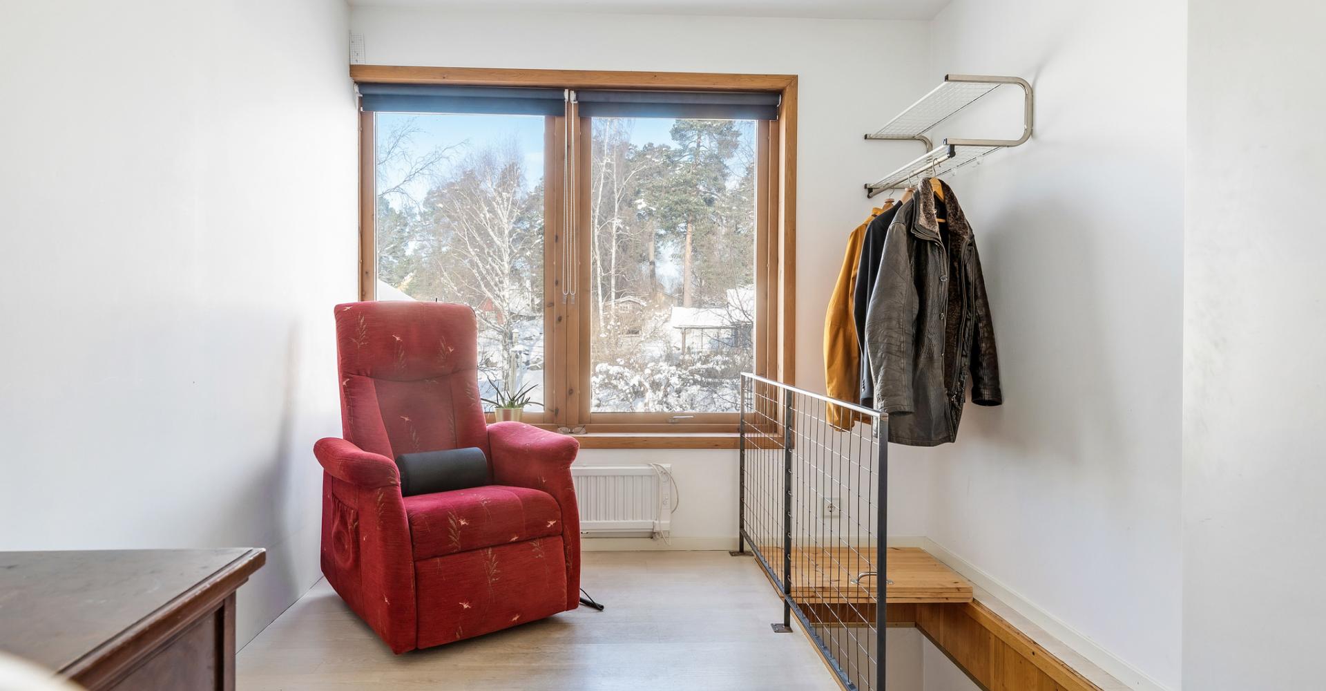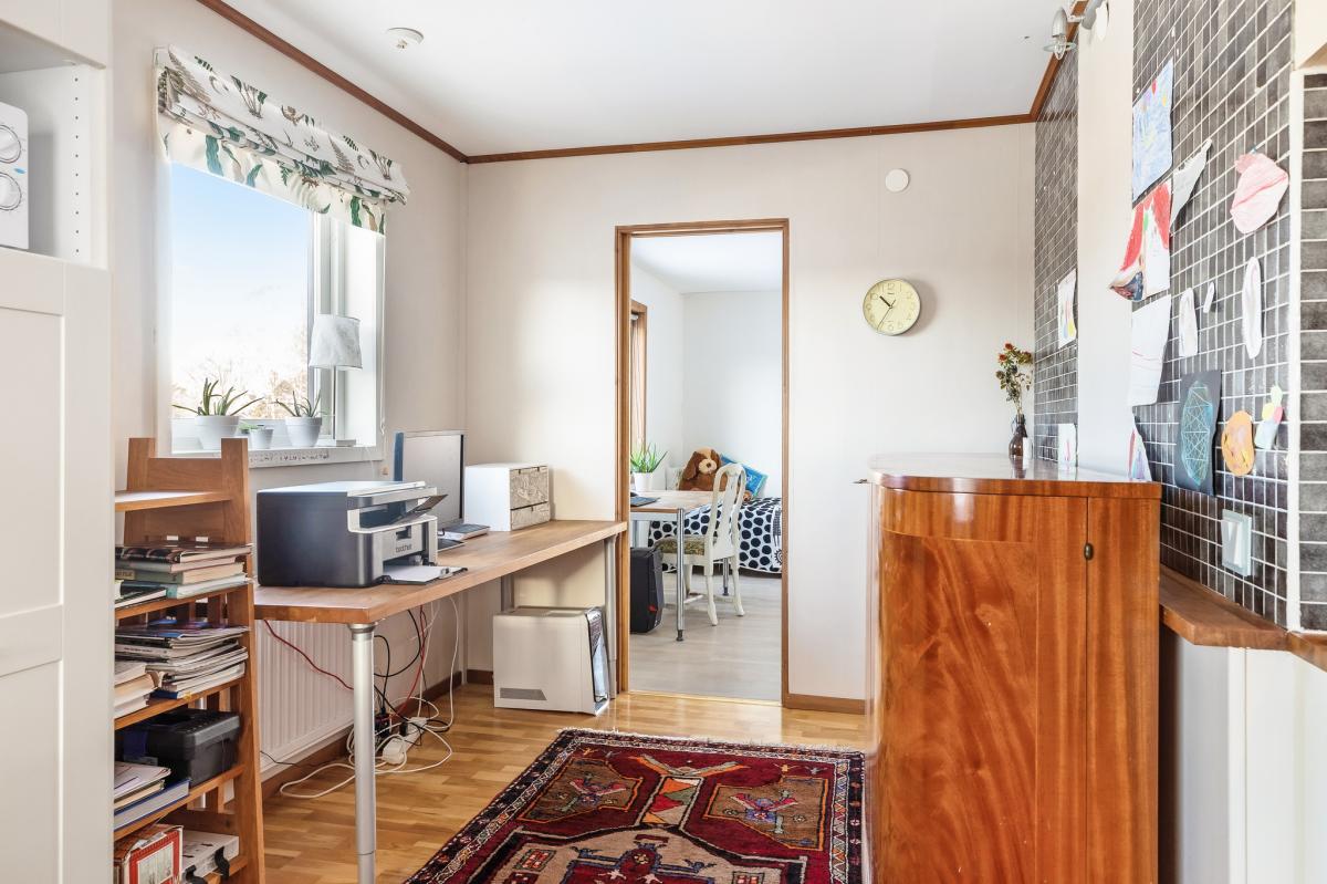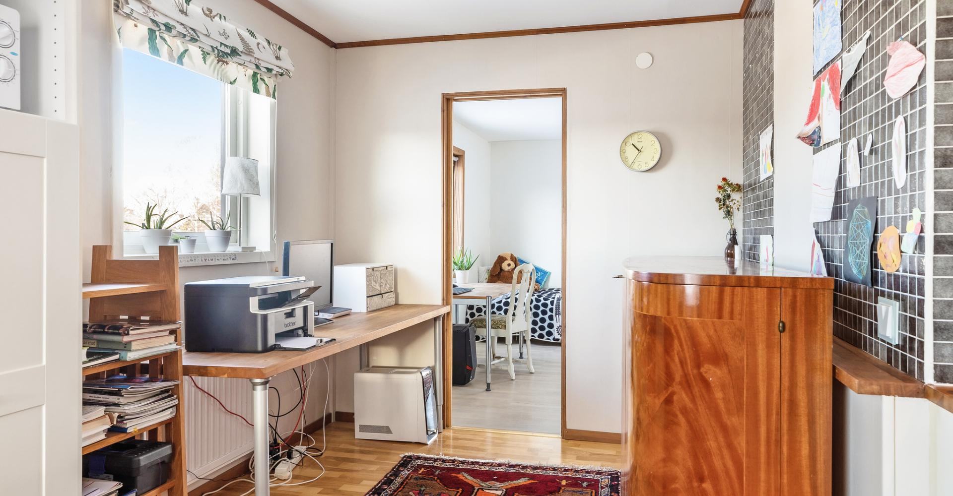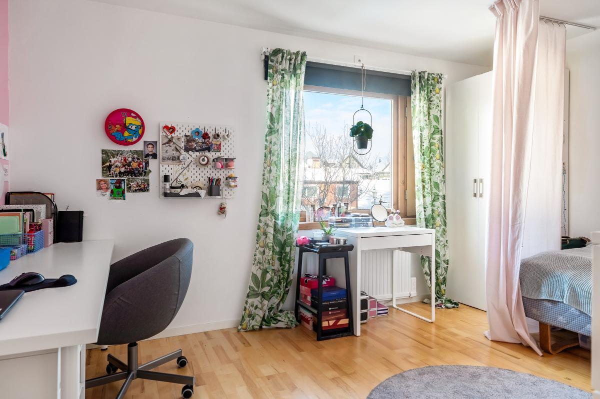 4 sovrum varav 3 alla är över 13 kvm stora, 1 dessutom med egen stor klädkammare. Därtill finns 2 genomgångsrum varav ett lätt går att återställa till enskilt rum genom att öppna upp en dörr till hobbyrummet från utsidan, för att på så vis få till ytterligare 1 riktigt sovrum. Groventré med tvättstuga.
