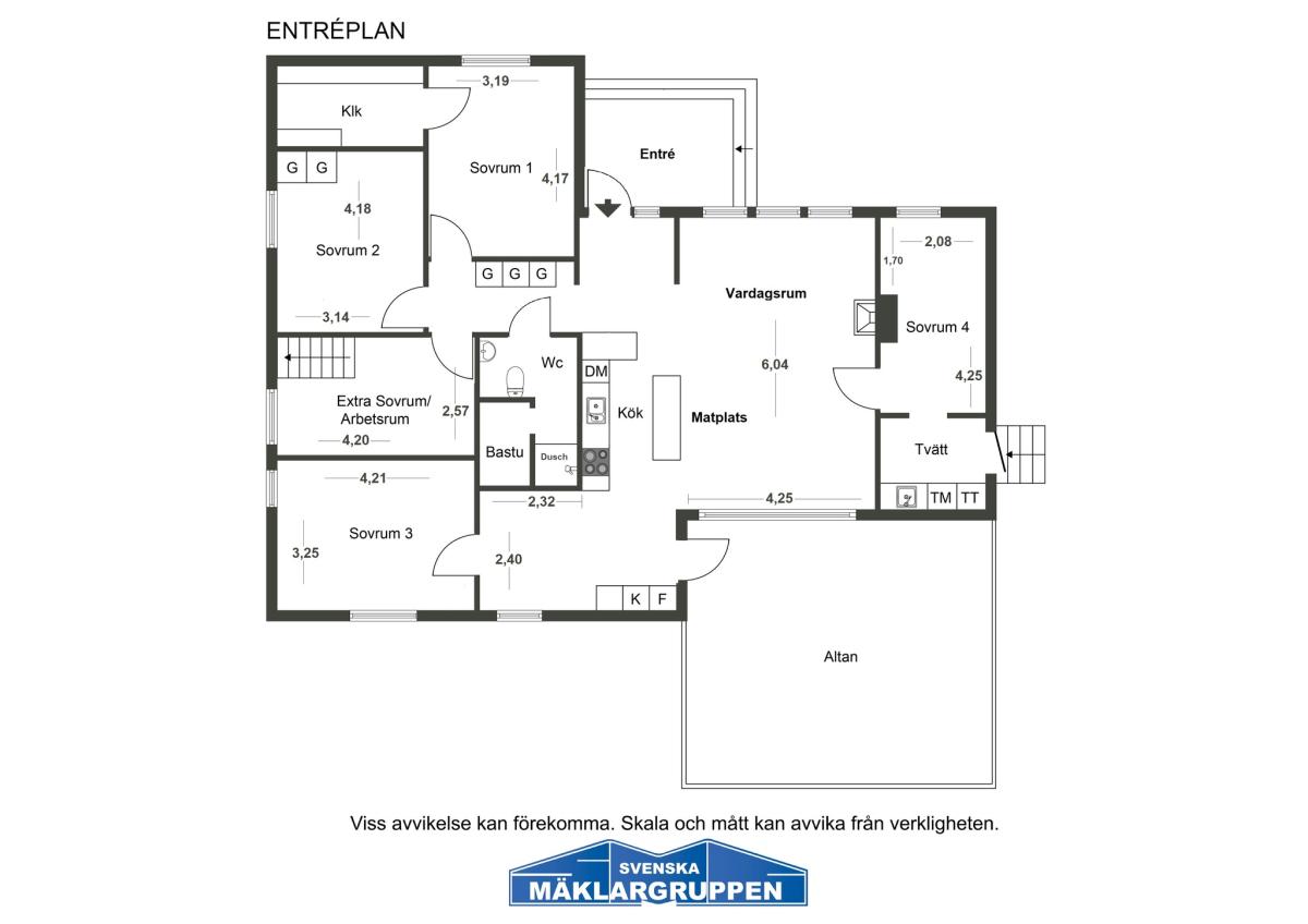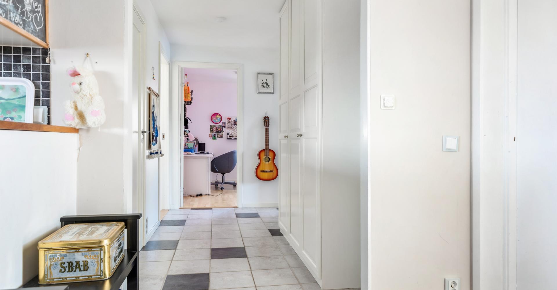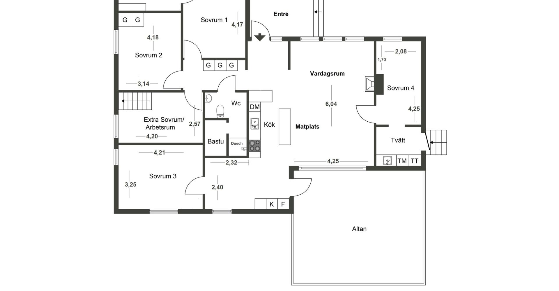4 sovrum varav 3 alla är över 13 kvm stora, 1 dessutom med egen stor klädkammare. Därtill finns 2 genomgångsrum varav ett lätt går att återställa till enskilt rum genom att öppna upp en dörr till hobbyrummet från utsidan, för att på så vis få till ytterligare 1 riktigt sovrum. Groventré med tvättstuga.