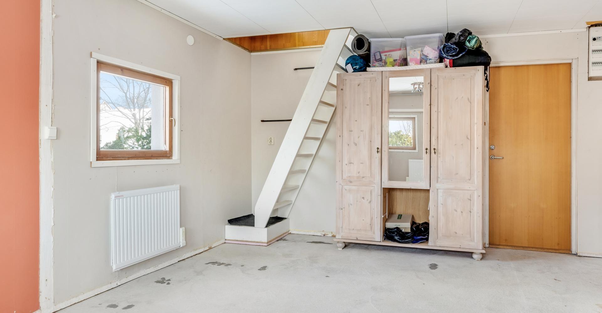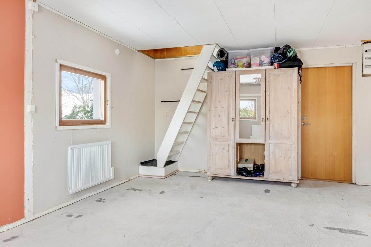- 161 m2 (Lantmäteriet) 1-plan med sluttningsdel i källare under del av hus där generationsbostad eller uthyrningsdel kan iordningsställas.