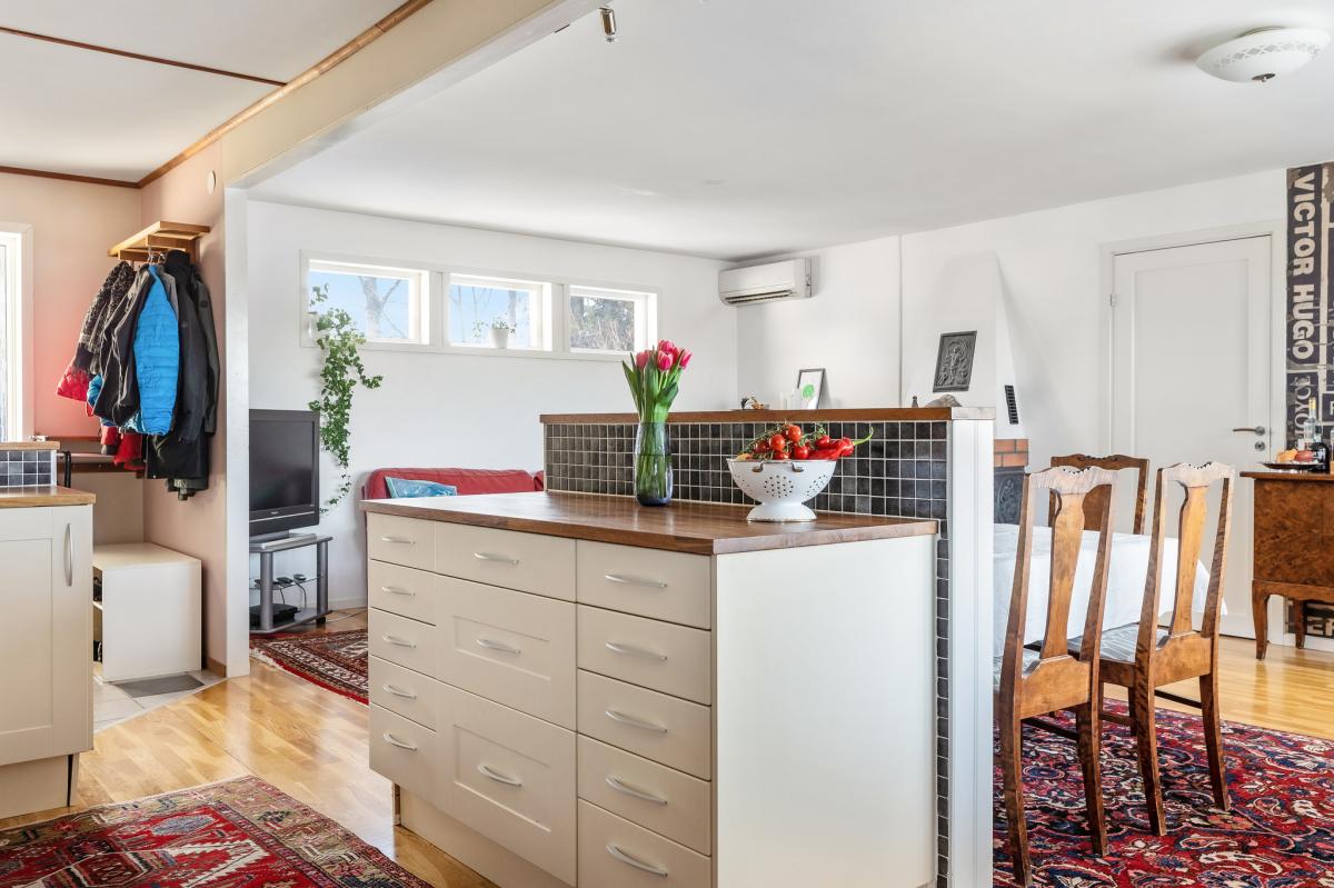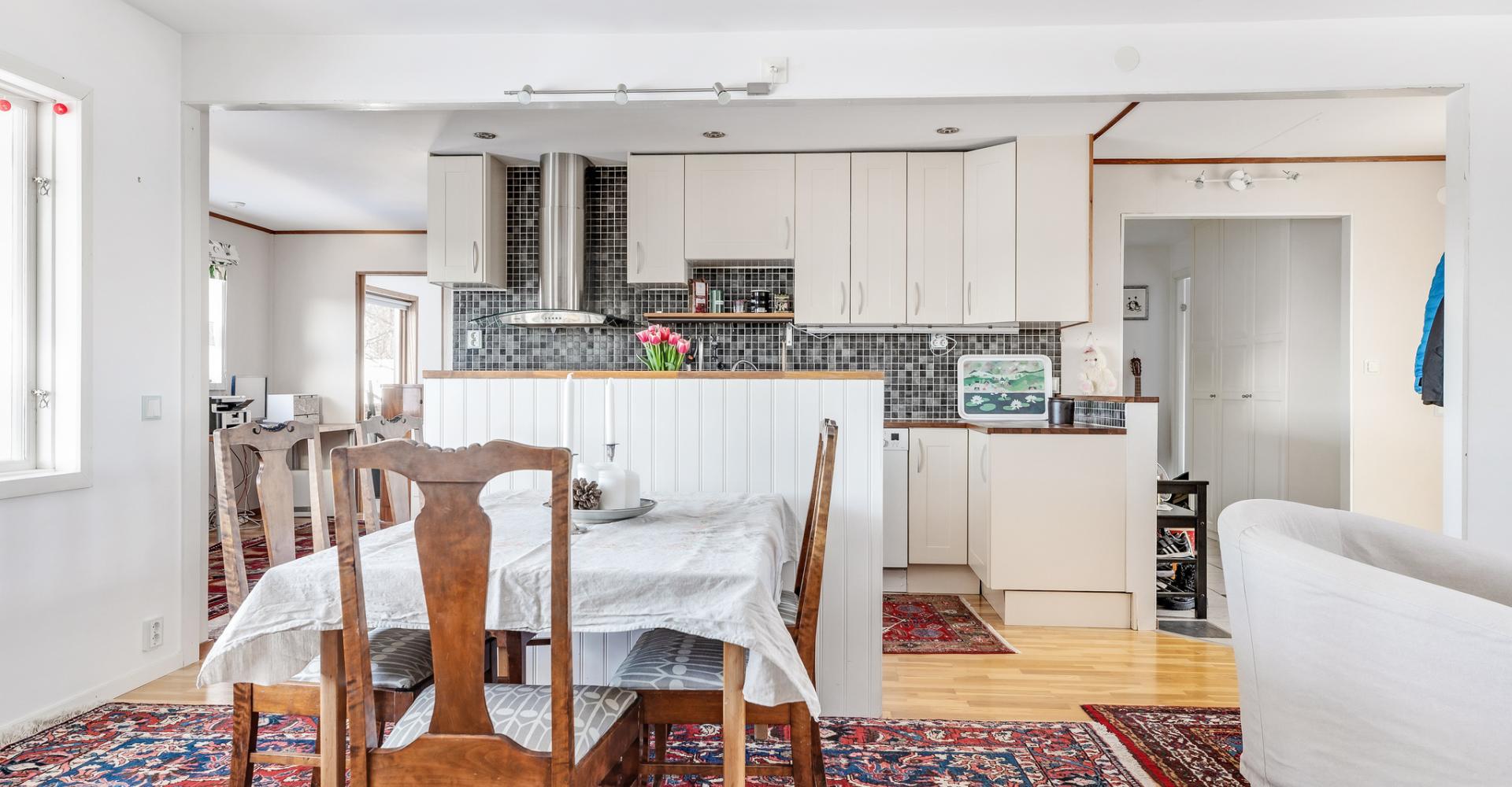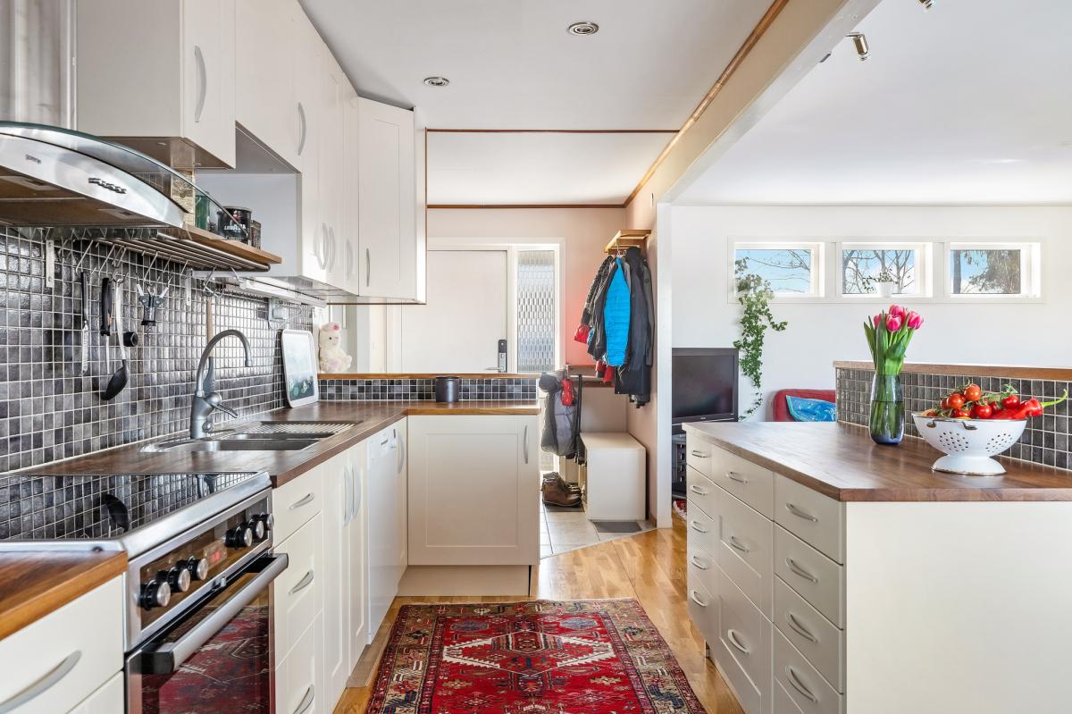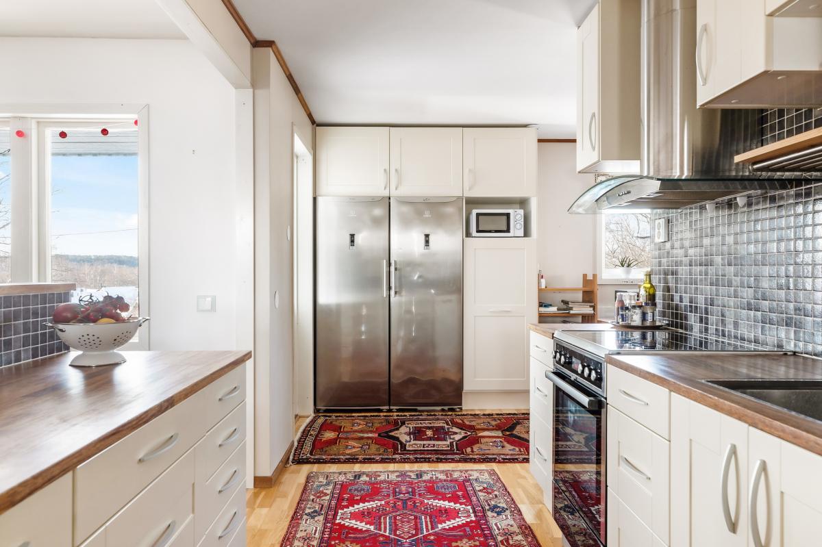 Kyl, frys, spis och mikro fr. 2017. Diskmaskin 2010. Köksfläkt. Praktisk köks-ö som avgränsning mot vardagsrummet. Utgång till 40 kvm altan i rakt västerläge.
