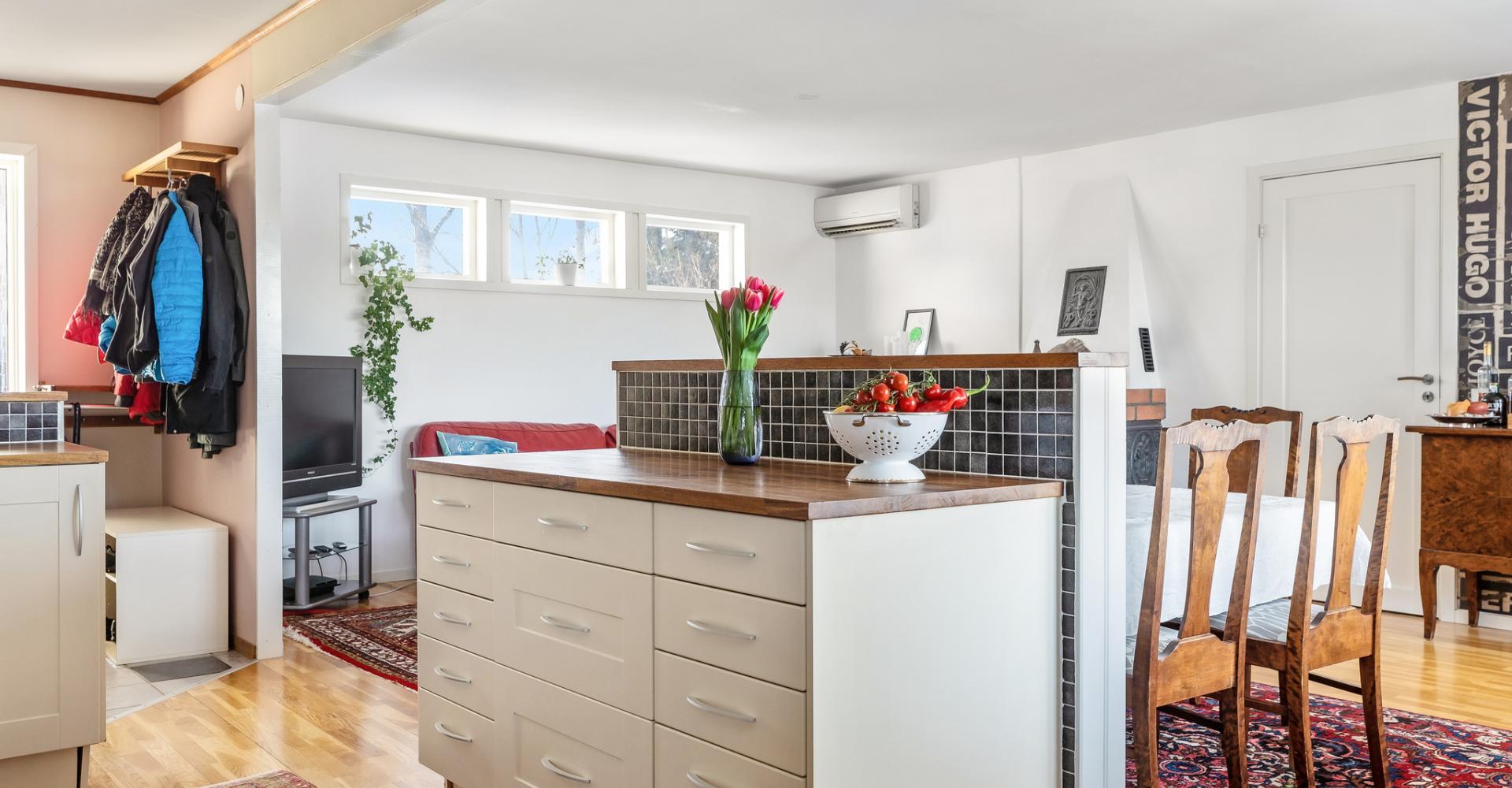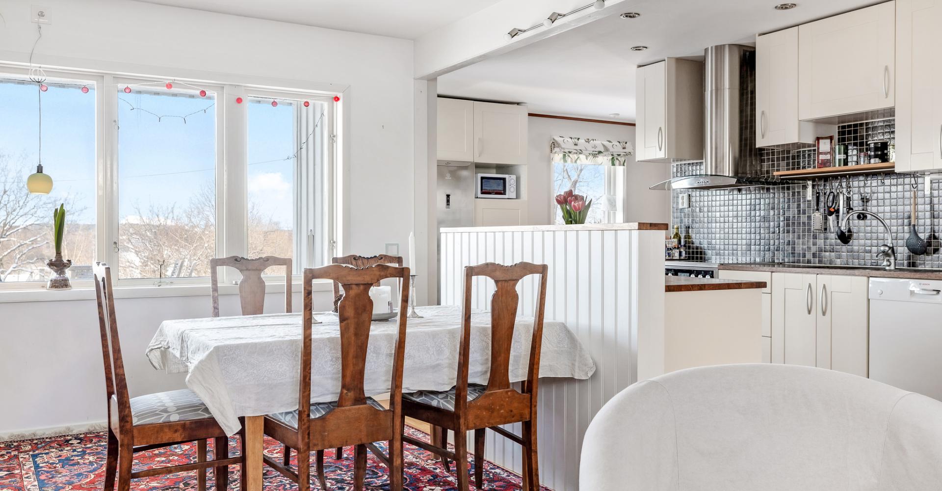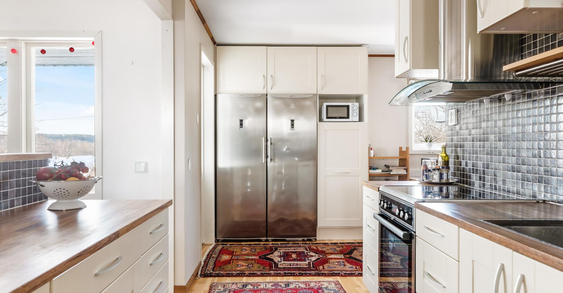 Kyl, frys, spis och mikro fr. 2017. Diskmaskin 2010. Köksfläkt. Praktisk köks-ö som avgränsning mot vardagsrummet. Utgång till 40 kvm altan i rakt västerläge.