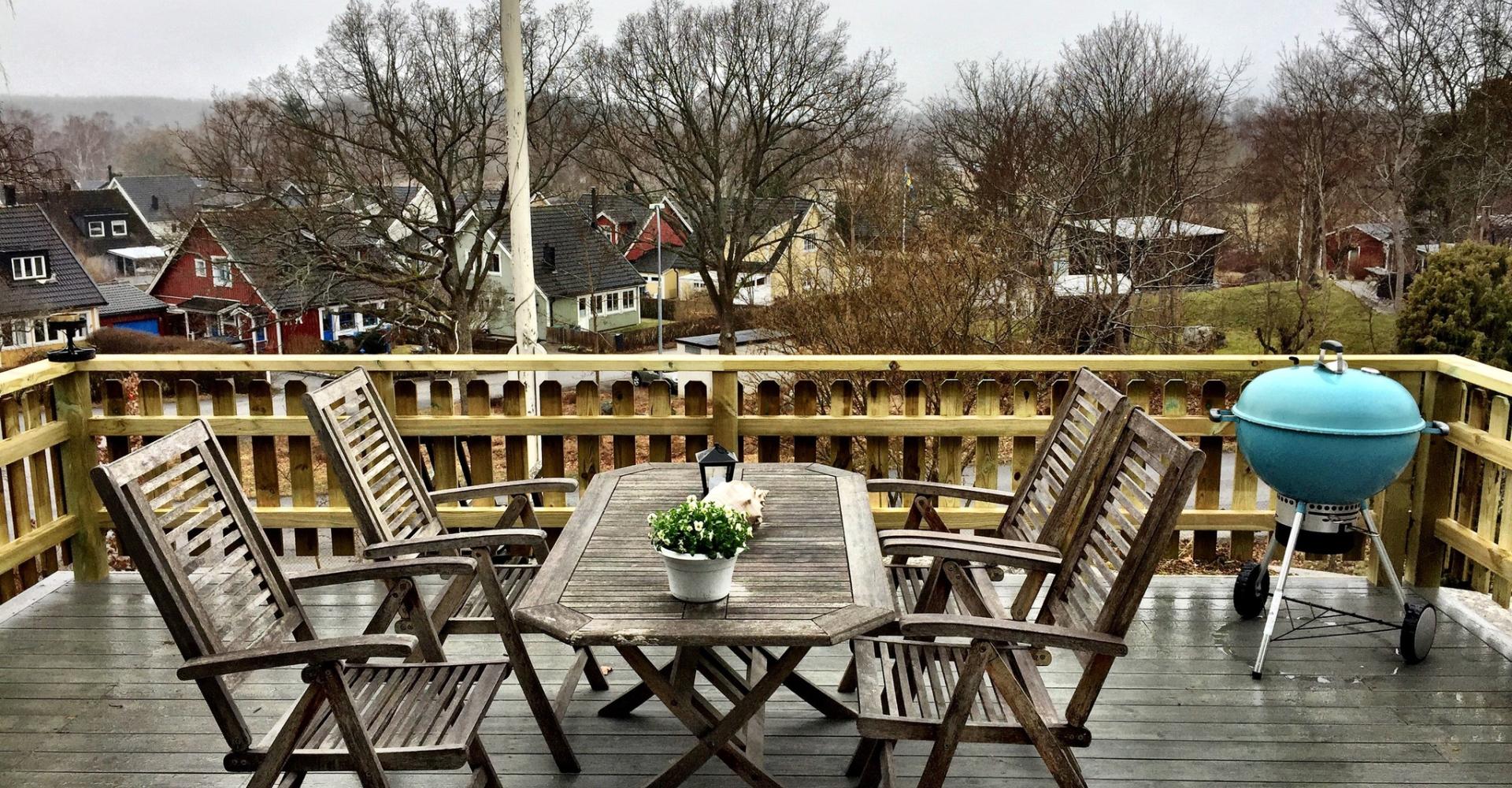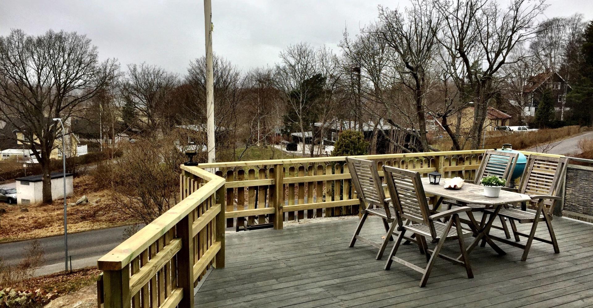 Stor altan i rakt västerläge med härliga solnedgångar över Mälaren