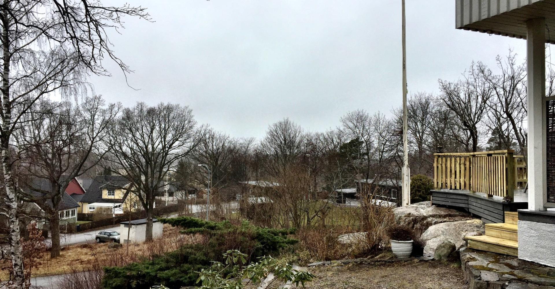 Altan om ca 40 kvm i solsäkert söder/västerläge med härligt fri utsikt med Mälaren i blickfånget vintertid.